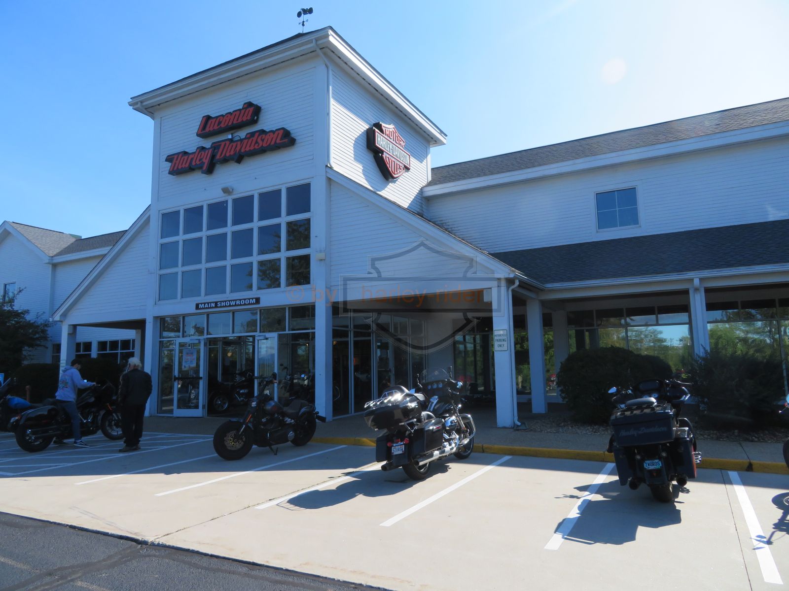 Als Erstes stand heute der traumhafte Lake Winnipesaukee auf dem Programm. Doch vorher stoppte uns ein Bar&Shield Schild vom HD Händler in Laconia, den wir doch besuchen mussten. Danach ging es an den See wo wir Kaffeepause machten. Vom See selber war leider nicht viel zu sehen, da wir erst an seinem Nordende auf ihn stiessen und die Kaffeepause im Dorfkern machten.