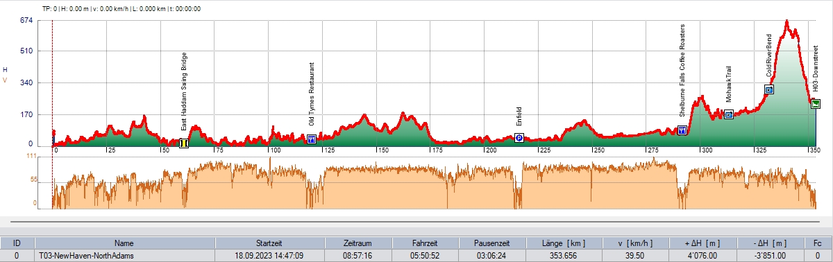 Auf der Interstate fuhren wir dann weiter im Regen wieder nordwestwärts um dann bei Greenfield auf den Mokawk Trail zu treffen. Diesem alten Indianer Trail folgten wir dann bis zu unserer Unterkunft in North Adams. Leider gab es unterwegs infolge des Regens und Nebels nicht viel zu sehen und auch nichts zum fotografieren.