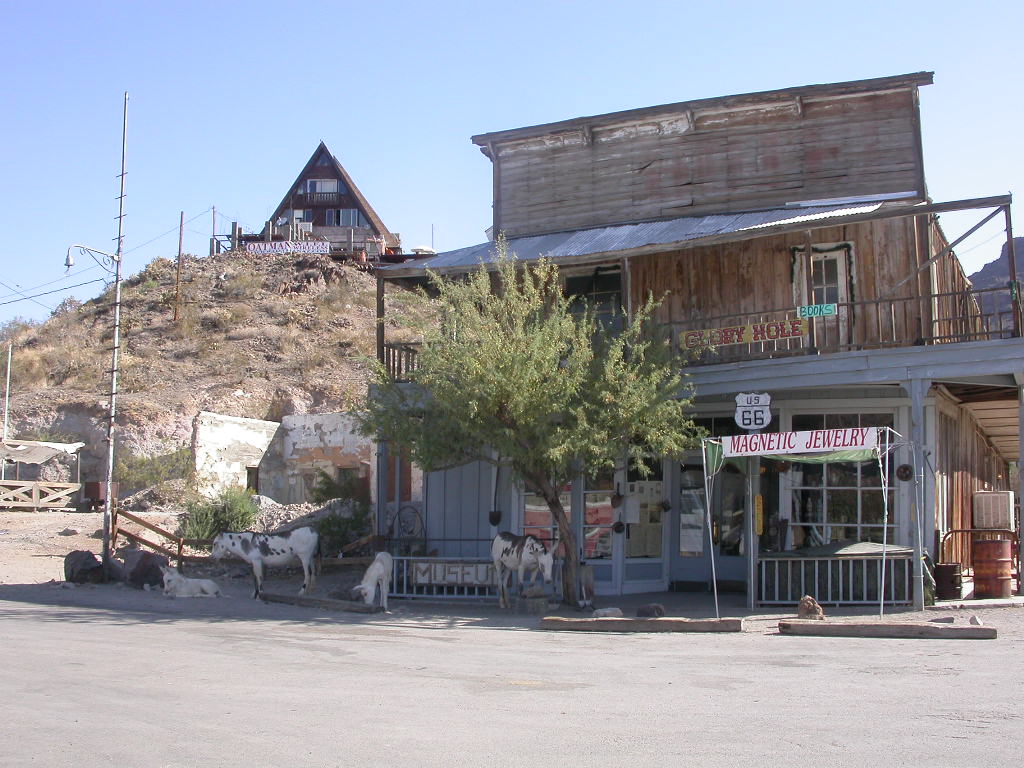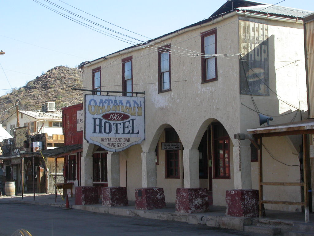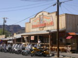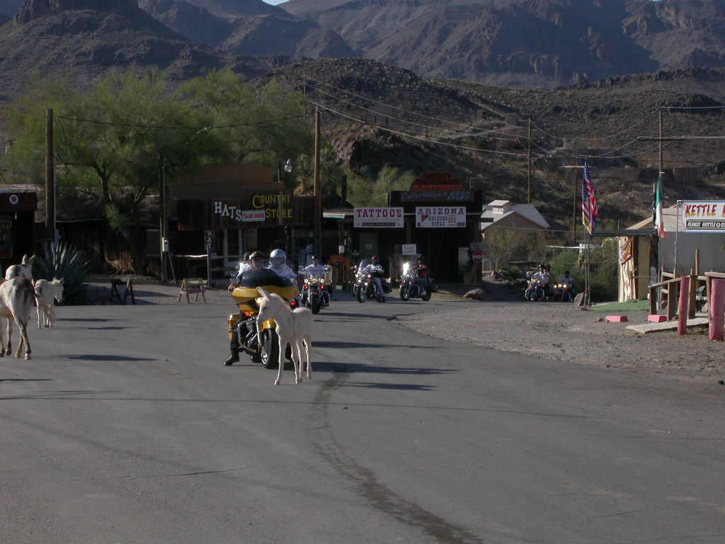 In Oatman, der 'lebendigsten Ghost-Town' von Arizona standen uns bei der Einfahrt erstmals die da lebenden Esel im Weg aber wir kamen doch noch zu unserer Stärkung in einem urchigen Saloon. Diese Frühstück konnten wir auch ganz gut gebrauchen, denn 360 meist reizvolle aber heisse und anstrengende Meilen (ca. 580 km) erwarteten uns heute.