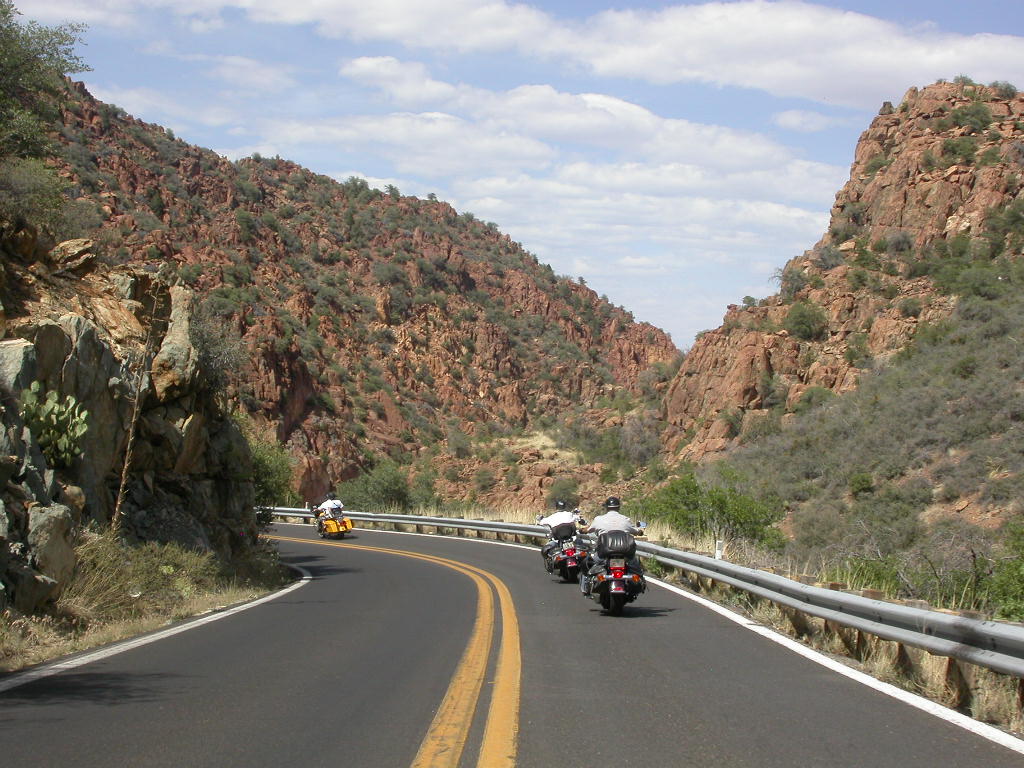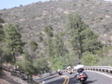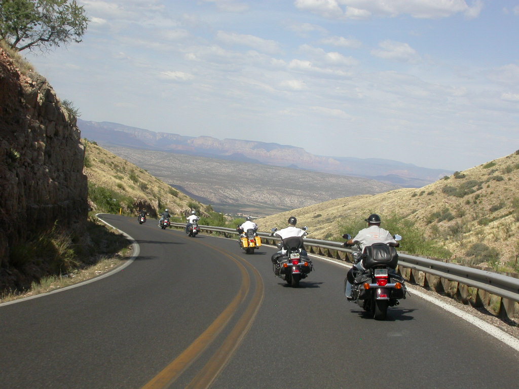 Danach flogen wir weiter tief Richtung Prescott und dann über eine schöne kurvenreiche Strecke Richtung Jerome kurz vor Sedona. Leider war hier dann gegenüber dem freien Jagen kollektives Gruppenfahren im 'Bergaufbremsertempo' angesagt, was dem Spass an dieser schönen Strecke doch etwas den Reiz nahm, dasselbe galt trotz Nachfrage zum freien Fahren auch für die Strecke von Sedona durch den malerischen Oak Creek Canyon nach Flagstaff. Bei zwei Kreuzungen wo man rechts abbiegen muss, könnte man sich ja verfahren ...