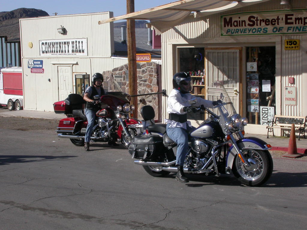 Nach dem einem kurzen Stopp beim lokalen Harley-Dealer wurde das längste noch zusammengehörende Stück der 'Mother-Road' von Kingman nach Seligman in freier Fahrt unter die Räder genommen. Dieses freie Fahren artete aber eher zum freien Jagen im Harley-unüblichen Tiefflugtempo aus und die Zeitzeugen der Route 66, welche zu einem kurzen Stopp einladen, wurden regelrecht links und rechts liegen gelassen.