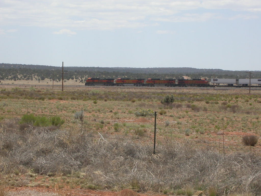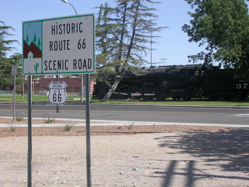 Weiter ging's auf der Route 66 nach Kingman, einer alten Poststation an der Bahnstrecke der Santa Fe Railway. Mit 5 Lokomotiven und oft weit über 100 Wagons sind die Züge auch heute noch sehr beeindruckend.