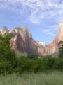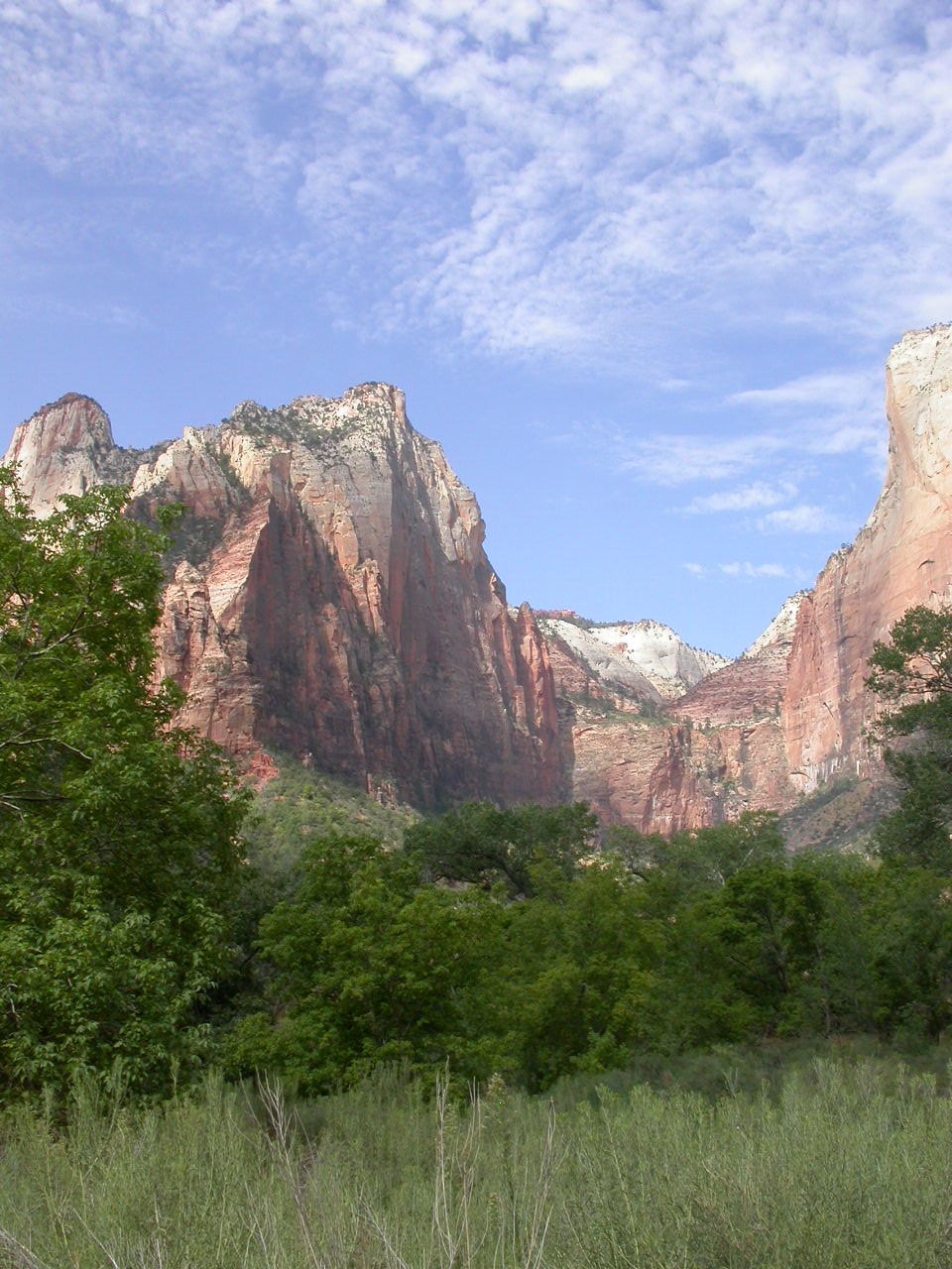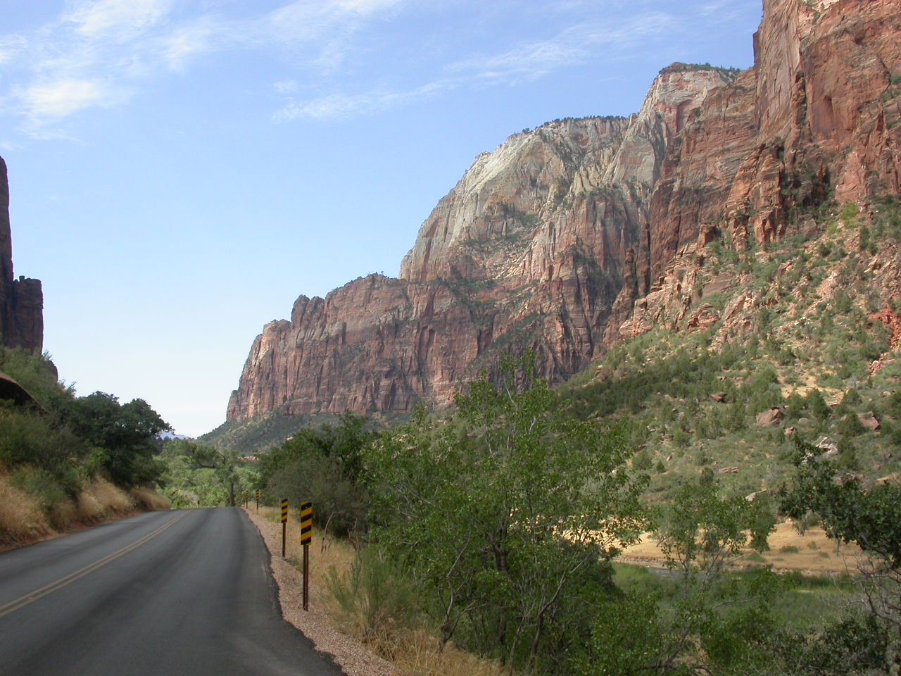 Durch den Dixie Nationalforest erreichten wir den Zion Nationalpark. Seit meinem letzten Besuch 1997 hat sich da die ganze Zugangsregelung geändert. Mit den Privatfahrzeugen ist es nämlich nun verboten in den Zion Park hinein zu fahren, dafür stehen Touristenbusse bereit.