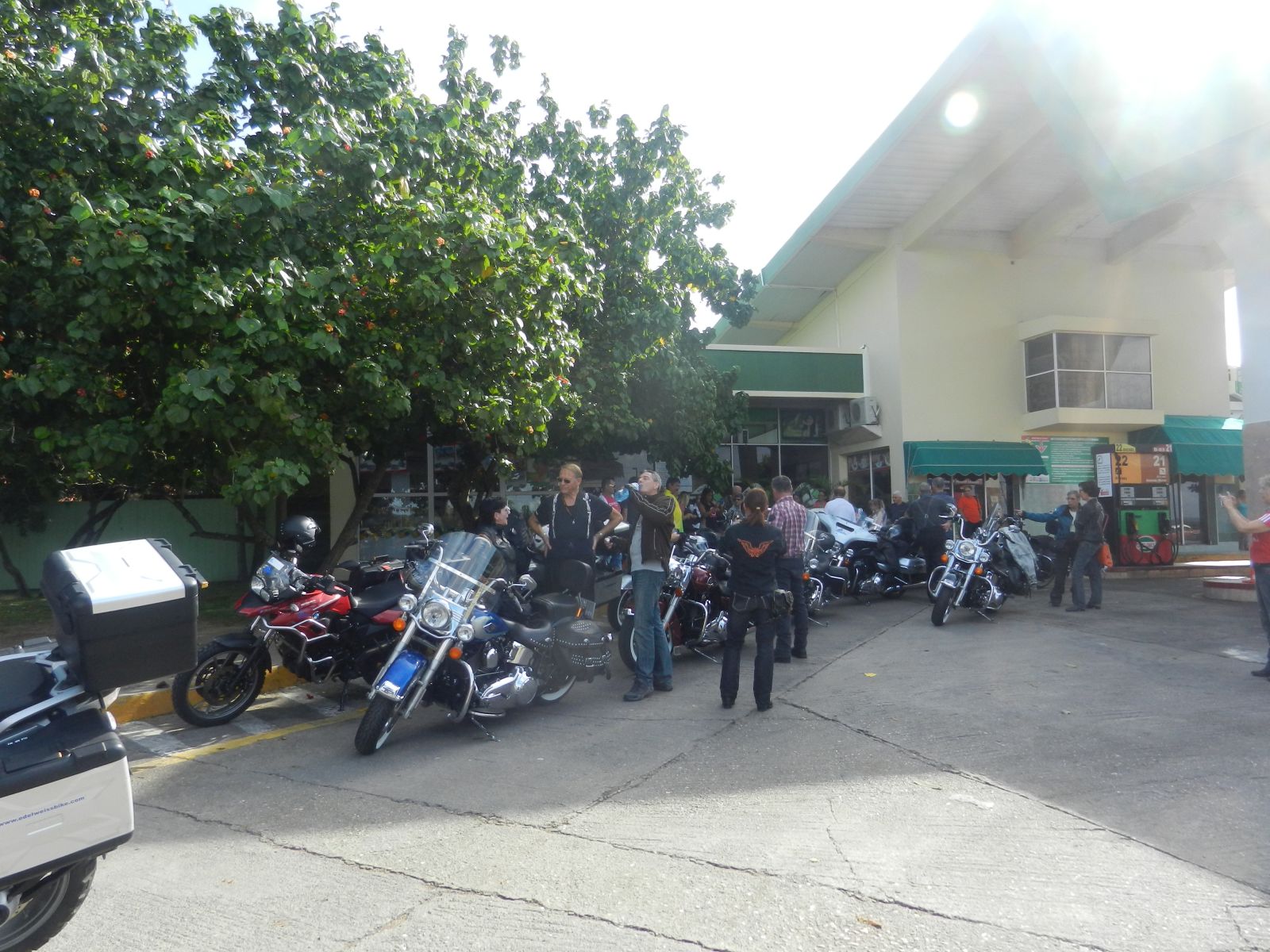 Nach der morgentlichen Orientierung fuhren wir als Erstes zum Tanken. Hanival organisierte sofort zwei Zapfsäulen und die 19 Bike waren recht flott aufgetankt. Es hätte eigentlich los gehen können, aber wir warteten und warteten - bis wir vernahmen, dass jede einzelne Note von der Kassiererin aufgeschrieben werden musste, und das dauerte.