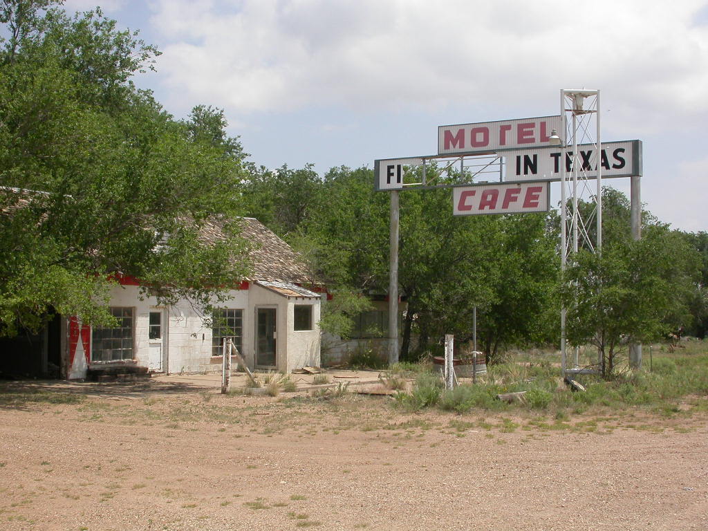 Adrian hat sich, ausser dem 'Midpoint Café', auch schon zu einer 'echten' Ghost Town entwickelt, ein verfallenes Haus nach dem andern. Hätte das Café nicht diese spezielle Lage, wäre hier wohl gar nichts mehr intakt wie kurze Zeit später in Glenrio an der Grenze zu New Mexiko.
