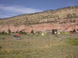 Einen kurzen Teil konnten wir entlang der roten Klippen der Interstate noch ausweichen, aber schon kurz danach endete die Route in Sackgassen, vor Sperrgittern oder führte als Gravel-Road (Schotter-, Naturstrasse...) weiter, so dass wir doch die Autobahn vorzogen.