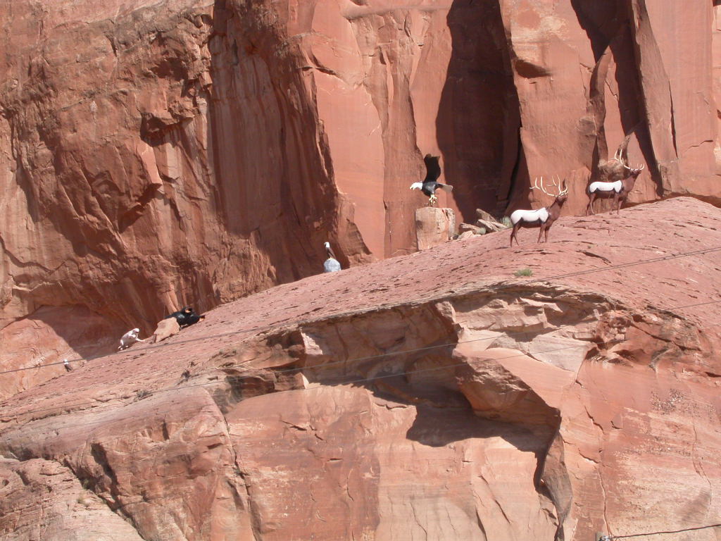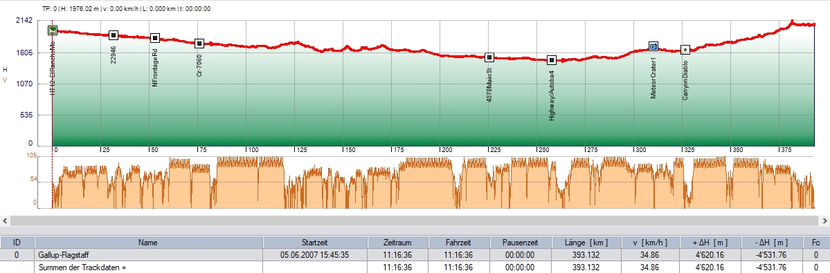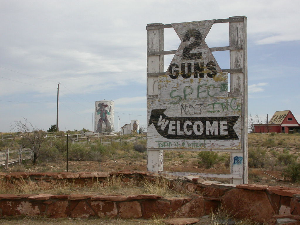 Die restliche Fahrt zu unserem Ziel wurde noch durch 'Jack-Rabbit Trading-Post', den Besuch des Meteor-Kraters, die von den Eagles besungene Strassenecke in Winslow, der Ghost-Town 'Two Guns' und den 'Two Arrows' unterbrochen.