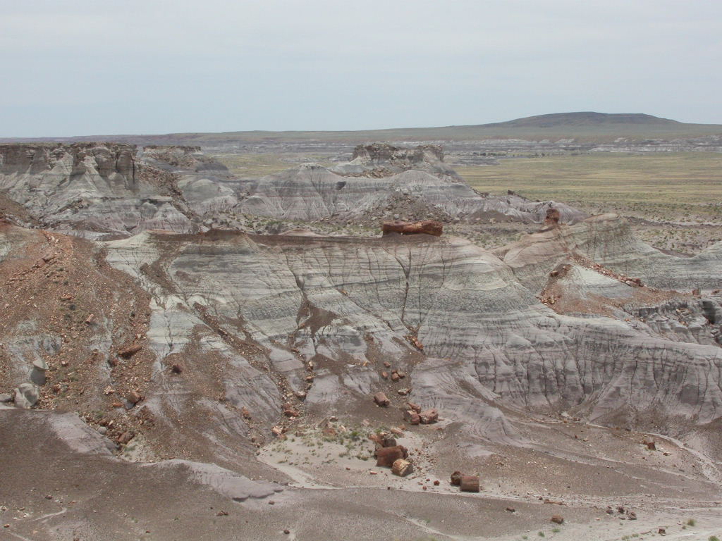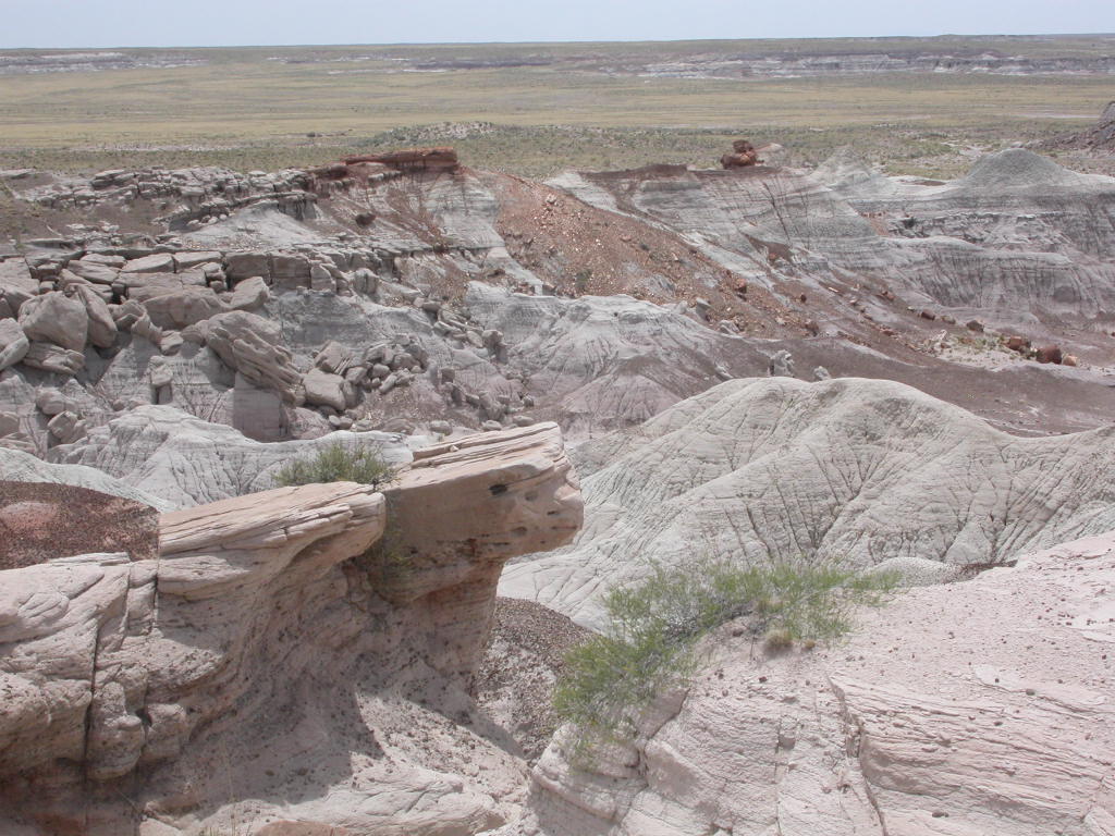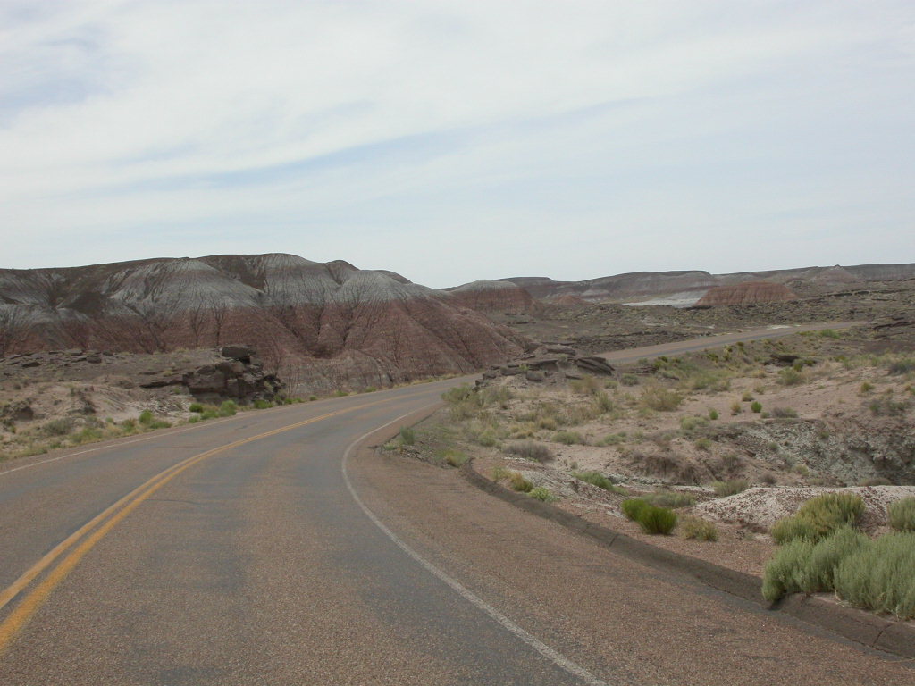 Ein erster Nationalpark Höhepunkt dieser Reise ist die Fahrt entlang der 'Painted Dessert' und durch den 'Petrified Forest'. Es ist schon erstaunlich, was hier in der flachen Prärie plötzlich für Zeitzeugen der Erdentwicklung zum Vorschein treten. Sogar ein kleines Mahnmal für die 'Mother-Road' ist auf der Strecke vorhanden.