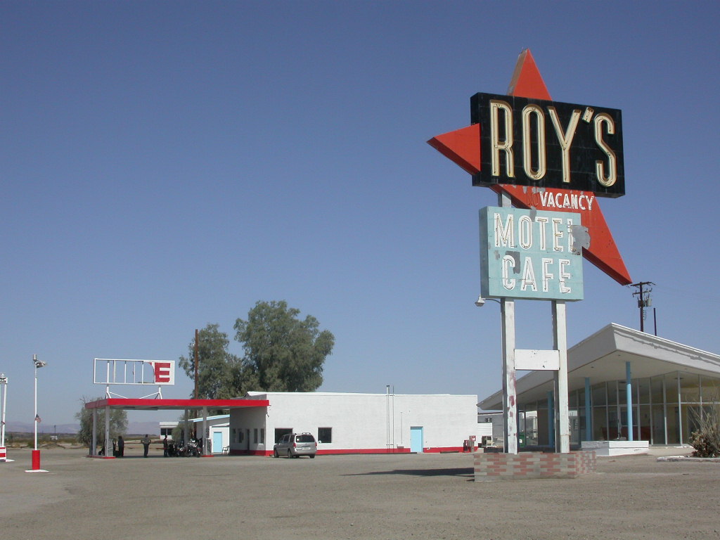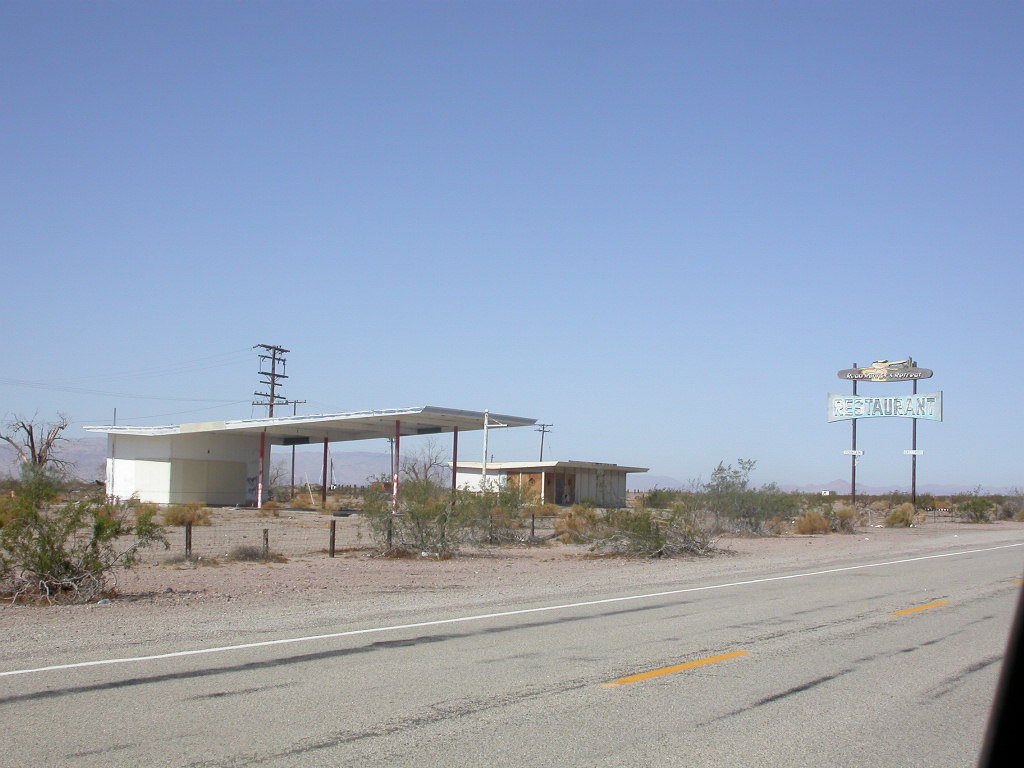 Nach einem mehr oder weniger erfolgreichen Casinoabend verliessen wir das Colorado Valley Richtung Mojave Wüste. In Amboy, bei 'Roys Caffee' stellten wir überrascht fest, dass dieses 'out of order' ist. es gab lediglich noch 'Emergeny Gas', pro Bike 1 Gallone für $ 4.00. Für das leibliche Wohl war entweder Kaffee oder Wasser vorhanden.