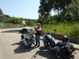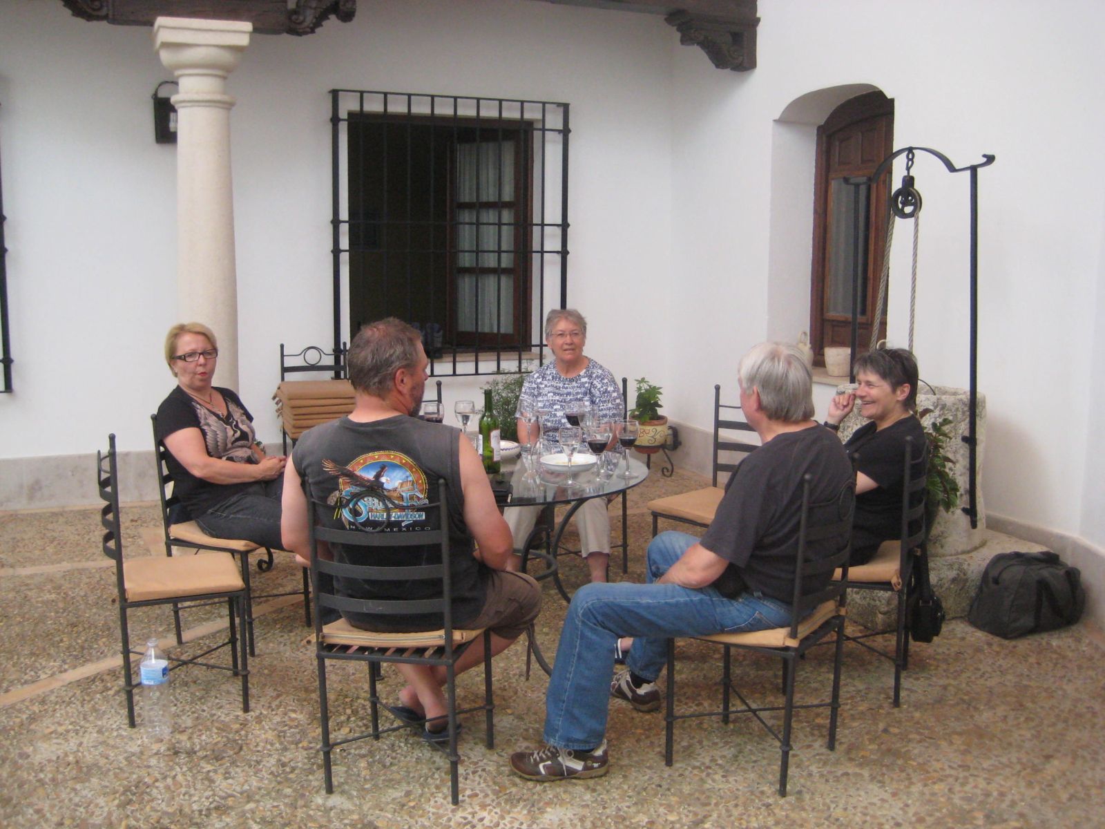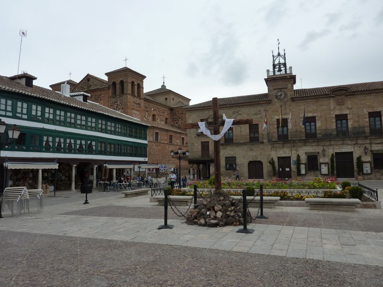 In Herrera del Duque tankten wir noch die Bikes auf und fuhren dann weiter unserem Tagesziel Almagro zu. Kurze Zeit später erreichten wir die Hauptstrasse (N430) welche uns nach Ciudad Real hätte bringen können. Auf dieser Strasse war es aber doch recht eintönig und man musste doch ein ungewohnt hohes tempo fahren, damit es nicht gefährlich wurde. So entschloss ich mich nach ein paar Kilometer südwärts nach Almaden zu fahren und so über wenig befahrene Nebenstrassen nach Almagra zu gelangen. In Almaden tranken wir noch was und dann fuhren wir durch die Weiten der Region Castilla La Mancha immer wieder dem Regen ausweichen zu unserem Hotel 'Retiro del Maestre' in Almagro.