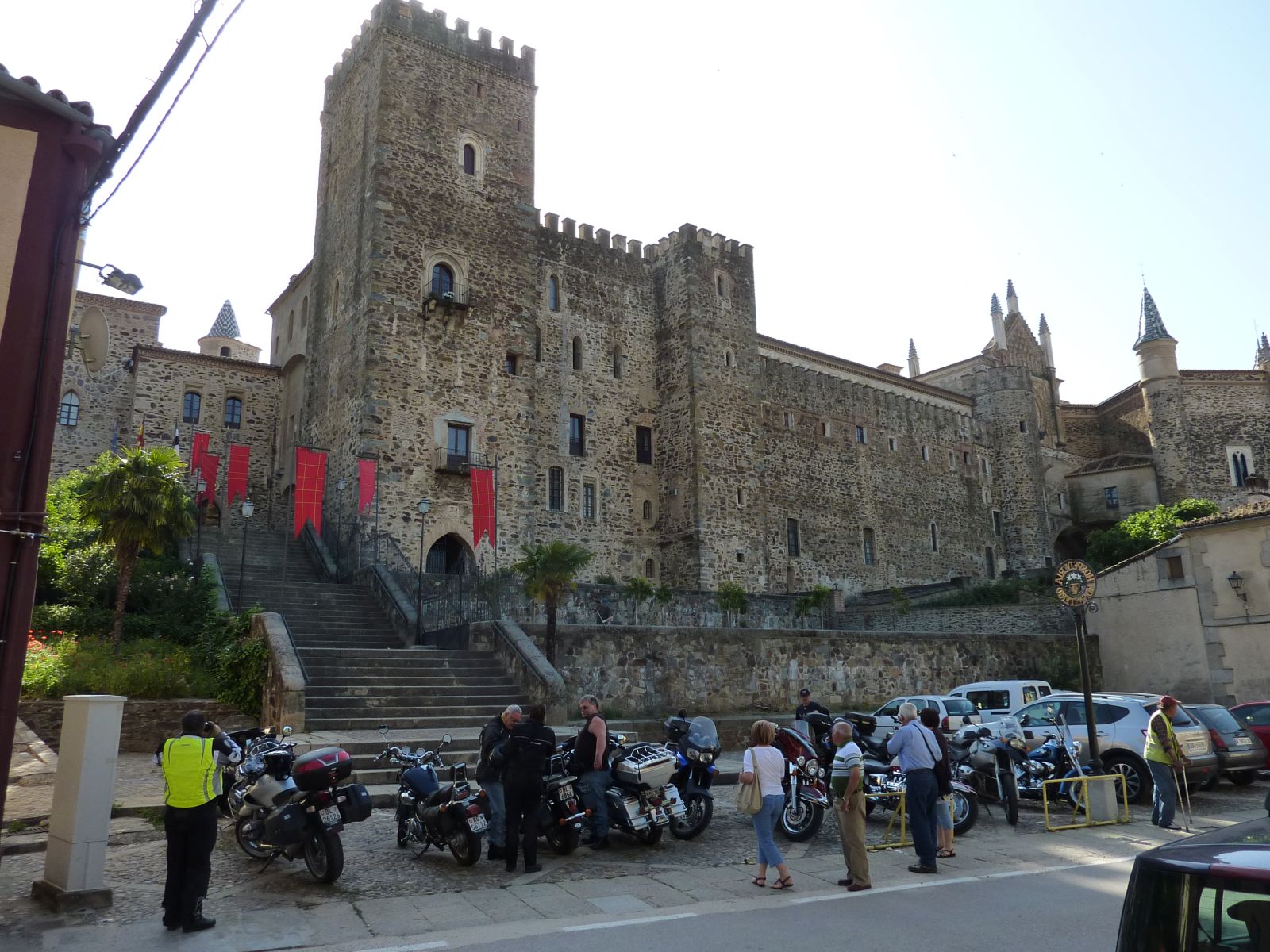 Wir fuhren also südwärts durch die Extremadura und über den Puerto de San Vicente erreichten wir Guadalupe. Kari mit seiner Gruppe war schon da und erklärte mir wo wir in der Nähe des Hauptplatzes parkieren konnten. Bikes abgestellt und dann zurück auf den Platz wo man darauf achten musste, welche Stühle man benutzte, denn die waren streng nach ca. 5 Restaurants aufgeteilt. Wir machten hier genügend Rast damit alle auf ihre Rechnung kamen, sei es mit Fotografieren oder einem zweiten Kaffee.