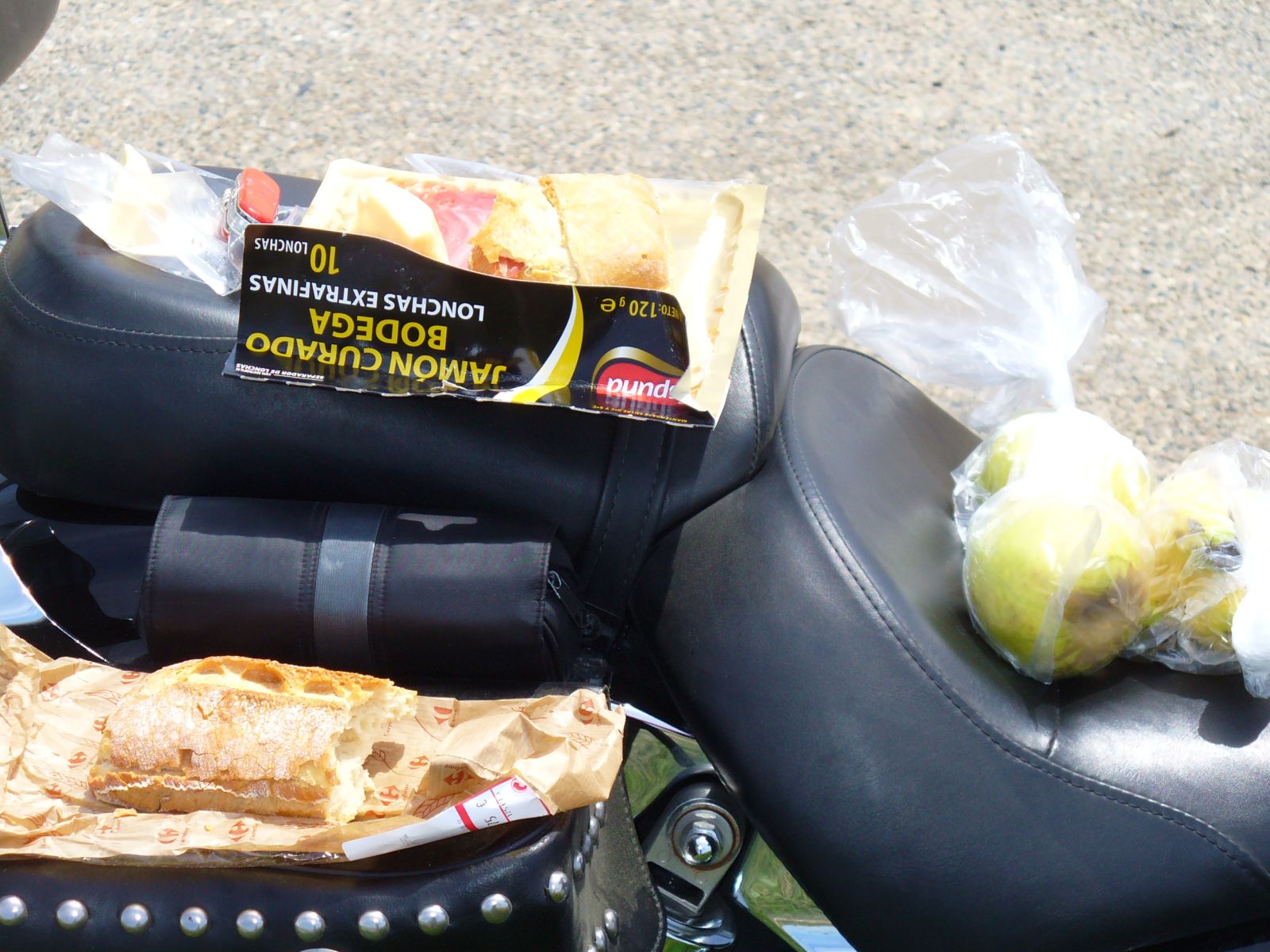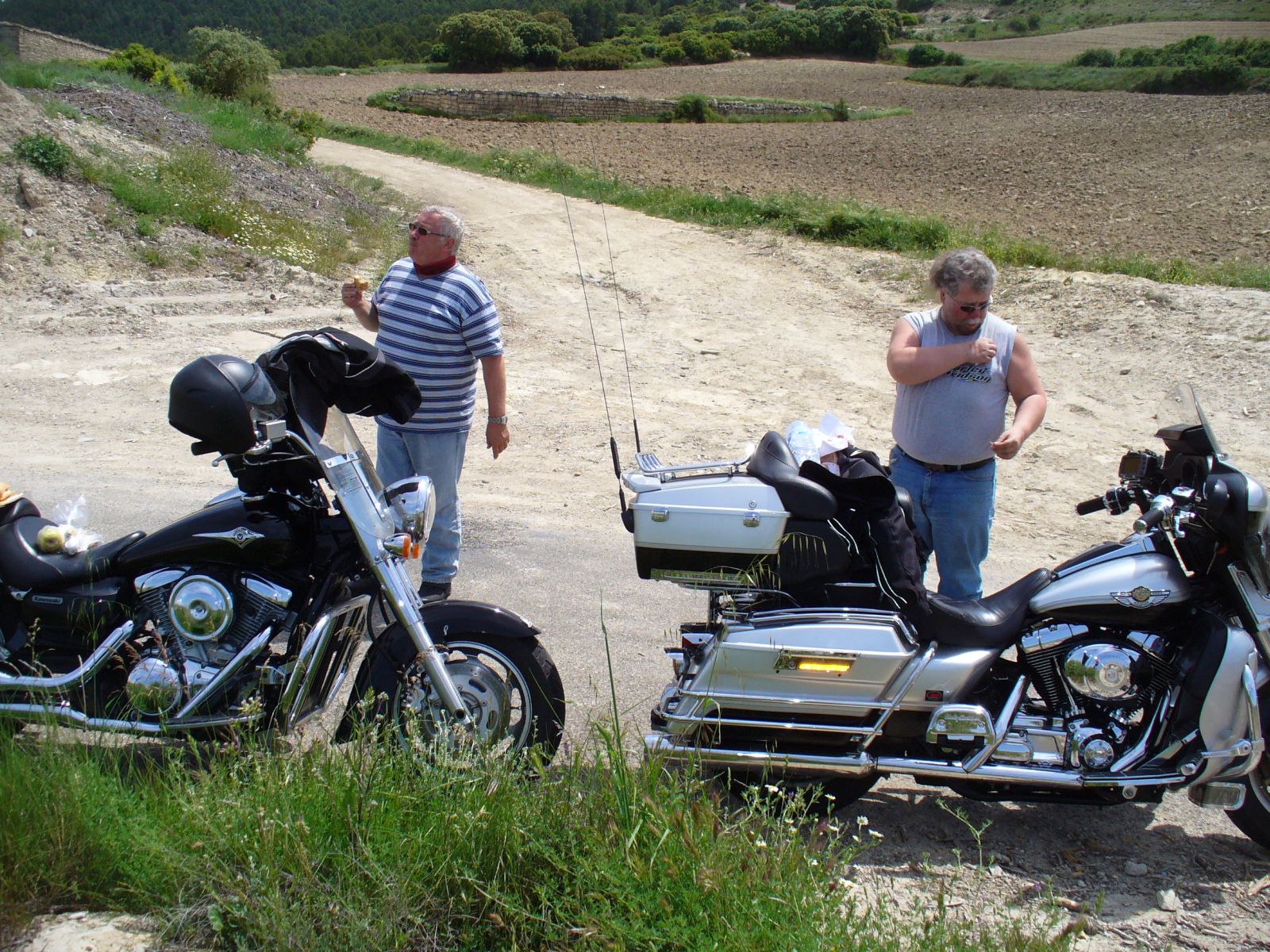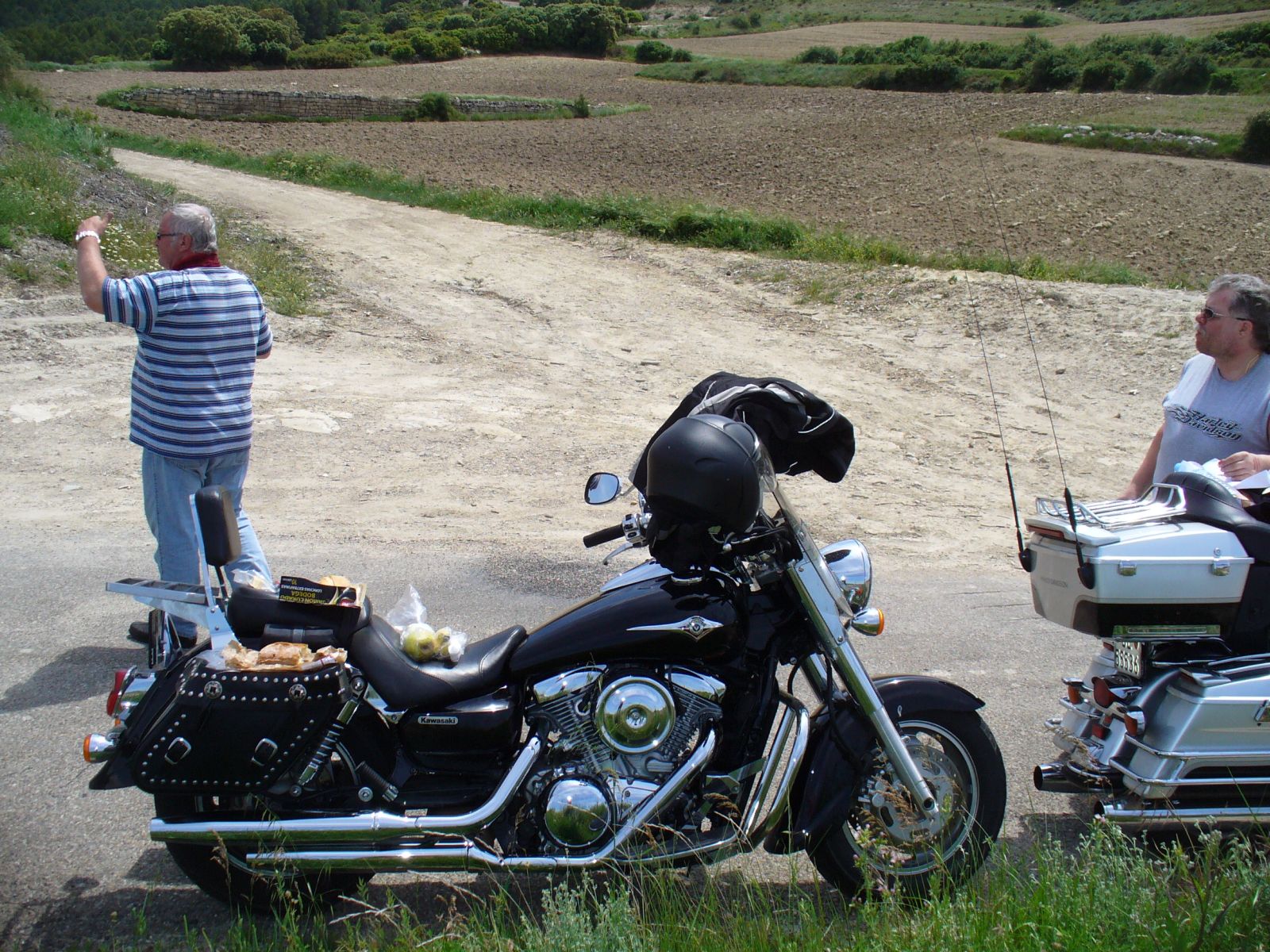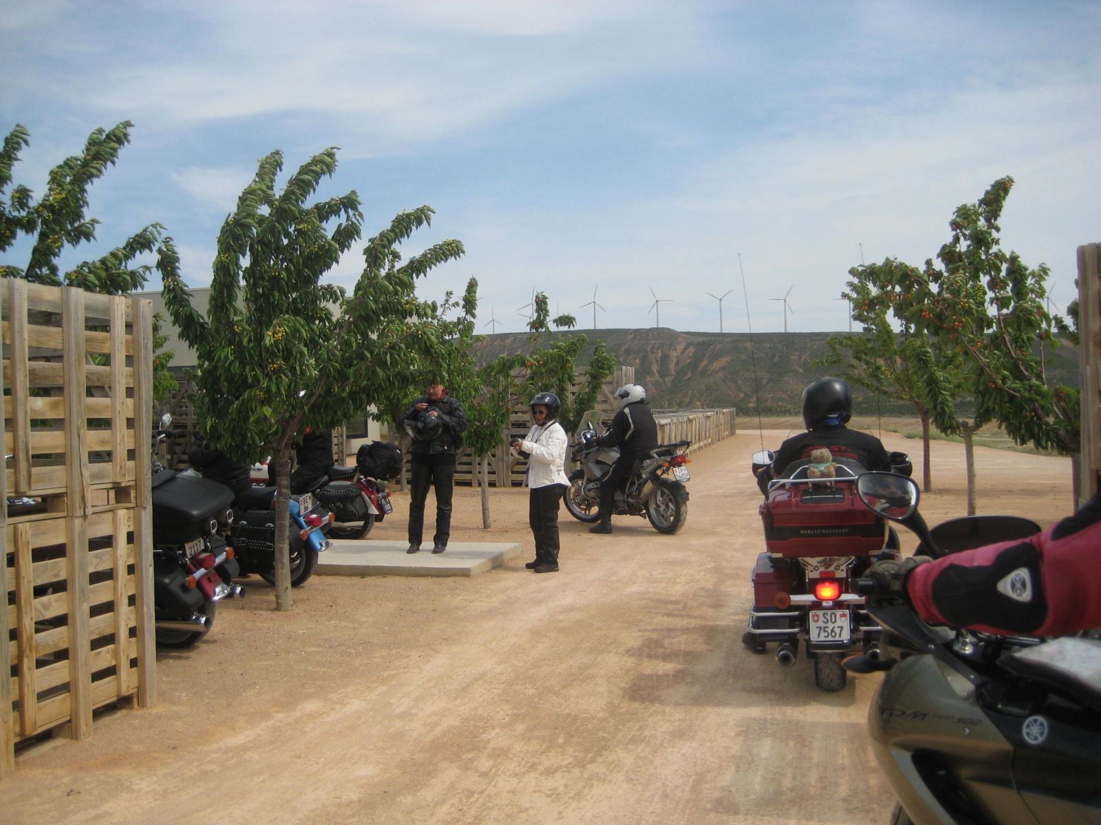 So stellten wir unsere Maschinen am Strassenrand ab, genossen die Aussicht und unser Essen. Edith wurde langsam nervös, denn die Tankanzeige an ihrem Töff zeigte bedenklich gegen null und von einer Tankstelle war weit und breit nichts in Sicht. Wir fuhren also weiter bis Ejea de los Caballeros und auch Edith kam mit dem letzten Tropfen da an der Tanke an. Nachdem wir unsere Bikes frisch getränkt hatten gönnten wir uns auch noch was, bevor wir bei Tudela unser heutiges Hotel 'Aire de Bardena' erreichten.