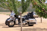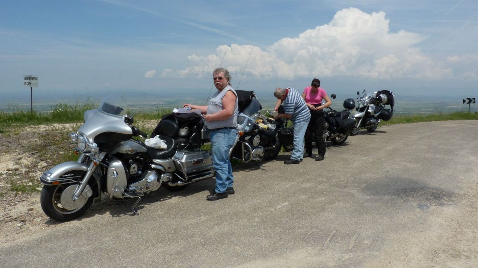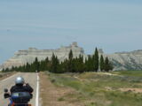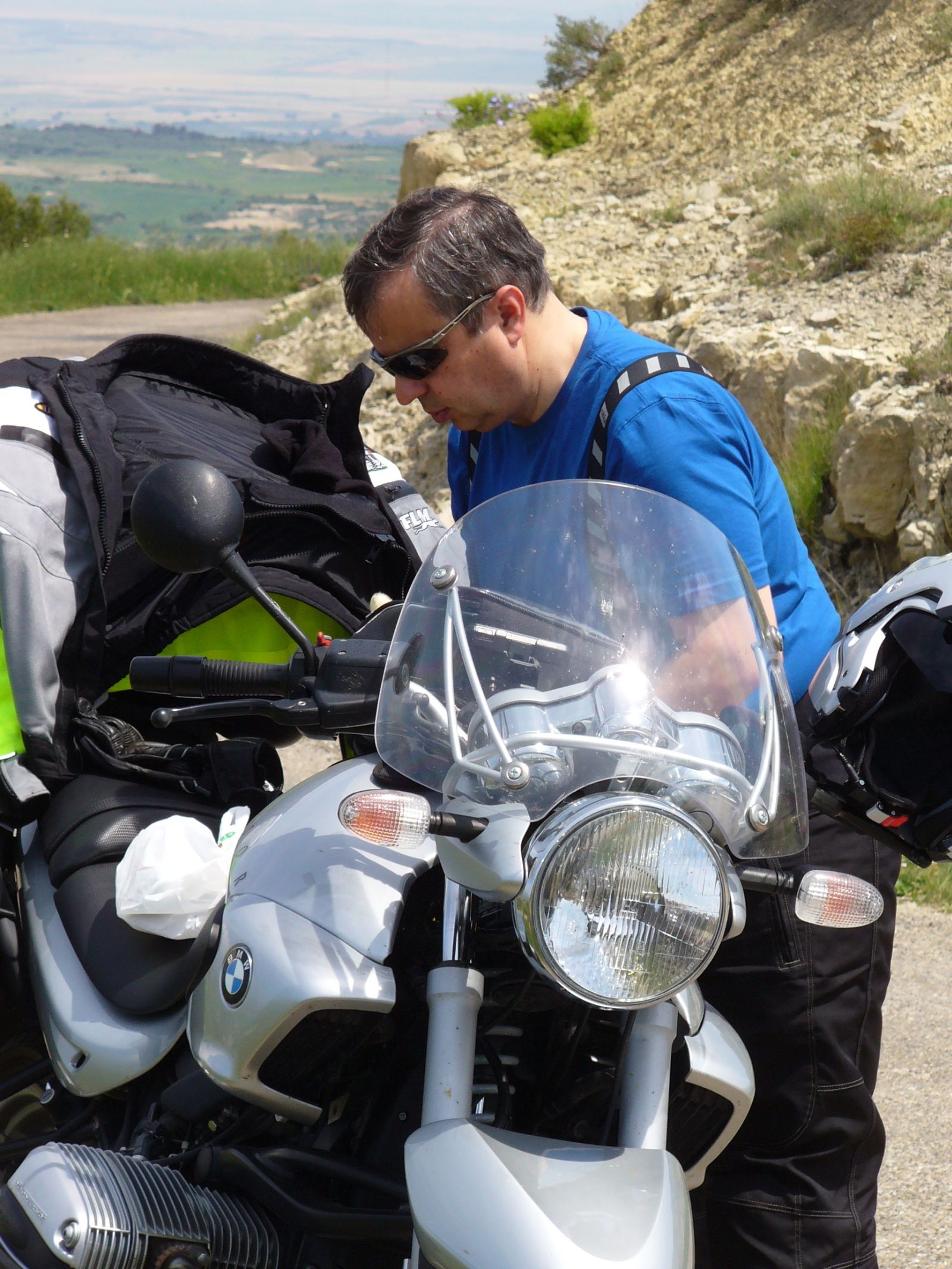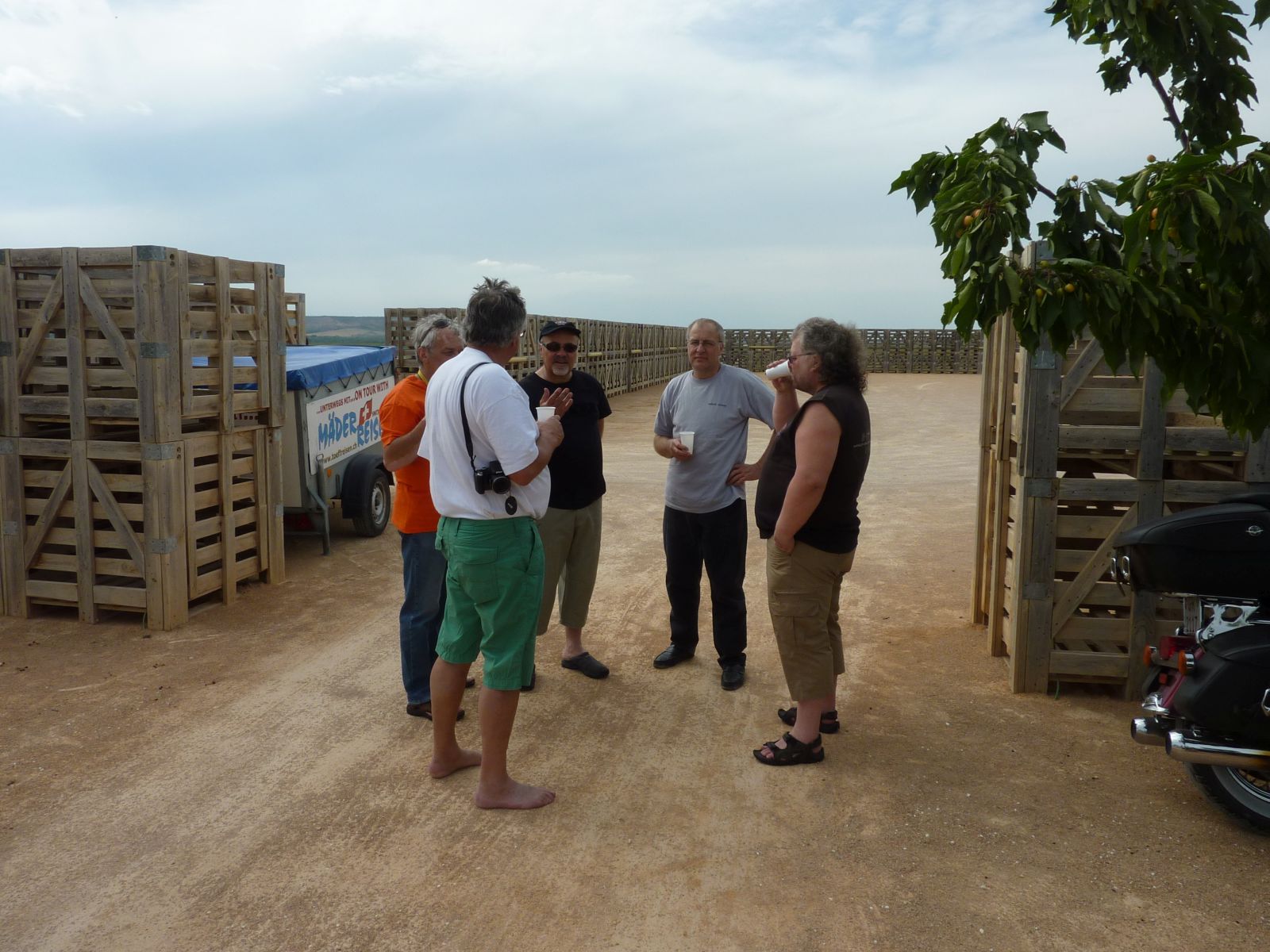 So stellten wir unsere Maschinen am Strassenrand ab, genossen die Aussicht und unser Essen. Edith wurde langsam nervös, denn die Tankanzeige an ihrem Töff zeigte bedenklich gegen null und von einer Tankstelle war weit und breit nichts in Sicht. Wir fuhren also weiter bis Ejea de los Caballeros und auch Edith kam mit dem letzten Tropfen da an der Tanke an. Nachdem wir unsere Bikes frisch getränkt hatten gönnten wir uns auch noch was, bevor wir bei Tudela unser heutiges Hotel 'Aire de Bardena' erreichten.