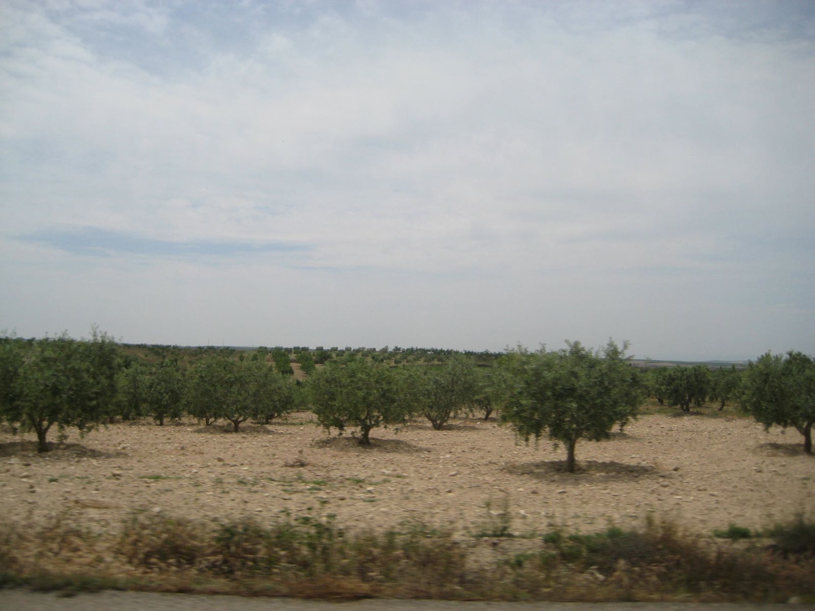 Es war gerade um 9 Uhr als ich einen Carrefour erblickte und ich dachte beim heutigen schönen warmen Wetter können wir zum Mittag Picknicken. So hielten wir da an und stellten fest, dass dieser erst um 9:30 öffnet. Zum Glück hatte das Kaffee aber schon offen, so dass wir gemütlich einen Kaffe oder einen zumo de naranja trinken konnten. Schon bald konnten wir unser Mittagessen einkaufen und die fahrt fortsetzen. Durch die Ebenen zwischen Lleida und Zaragossa hatte es doch richtige 'Rumpelpisten' auf welchen das Fahren keine Freude machte, doch schon bald besserten sich die Strassen und die Landschaft hatte doch sehr viel zu bieten. Am Strassenrand wuchs der wilde Mohn in saftigem rot und die Olivenbäume schimmerten silbern.