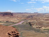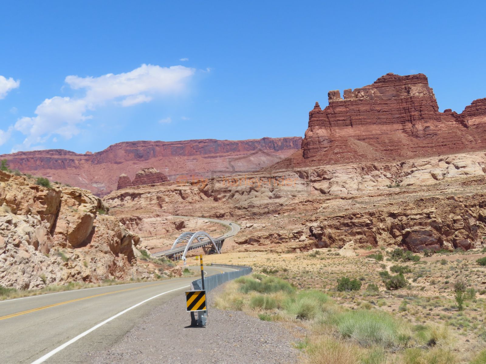 Auf der Weiterfahrt ging es über den Colorado mit seiner berühmten Brücke und weiter zum Moki Dugway. Unterwegs liess ich das Natural Bridge Monument links liegen, fuhr aber zuerst noch zum Muley Point hinaus. Schon hier sah man, dass ein rechtes Gewitter gewütet hatte und die Strasse war zum Teil sehr schlammig.
