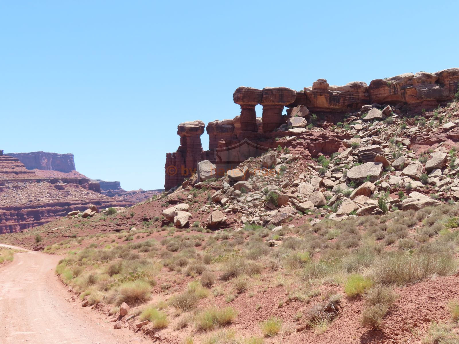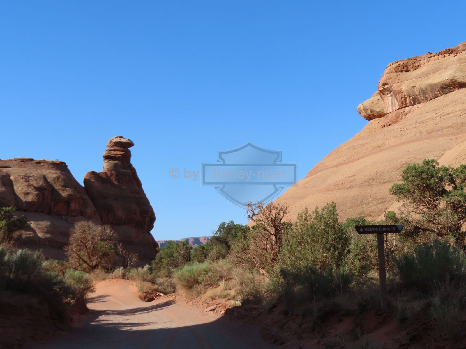 Zurück geht es auf derselben Strecke und man könnte noch in den Bull Cabyon weiterfahren wo es auch einen Wanderweg gäbe um die Gemini Bridges von unten zu sehen.