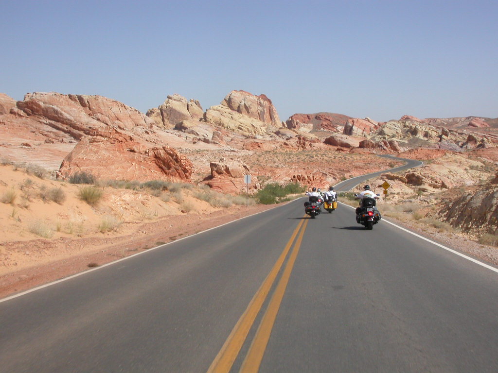 Wir entschlossen uns also trotz der zu erwartenden Hitzefahrt schon zu starten und durchfuhren als erstes das Valley of Fire. Einfach grandios diese roten Felsformationen, die sich links und rechts der Strasse auftürmen. Nach der Fahrt entlang des Lake Mead durchfuhren wir noch kurz die 'Millionärssiedlung' Lake Las Vegas.