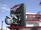 In Seligman biegt die Route 66 von der Interstate ab und hier ist das längste noch erhaltene Teilstück zu befahren. Doch bevor man dieses Teilstück befährt lohnt sich ein Halt bei den Gebrüder Delgadillo, den 'Rettern' der Route 66 in Arizona. In Juan's Snow Cap Drive-In kann man sich Verpflegen, doch Vorsicht vor seinen Spässen. Im Barber- und Gift Shop von Angel gibt's Souveniers und er beseitigt auf Wunsch auch den wilden Bart- und Haarwuchs. Diese Gelegenheit liessen wir uns nicht nehmen und nahmen auf dem Barbierstuhl für eine Behandlung Platz. Plötzlich gab es eine grosse Aufregung und ein ganzer Pulk Harleys fuhr vor den Lokalen auf. Darunter war auch Willy G. Davidson mit seiner Familie. Sie waren auf dem 'Ride Home', der Sternfahrt zu Harleys 100tem Geburtstag. Wir kamen mit ihnen in Kontakt und es war ganz interessant mal mit den Fabrikbesitzern direkt zu sprechen.