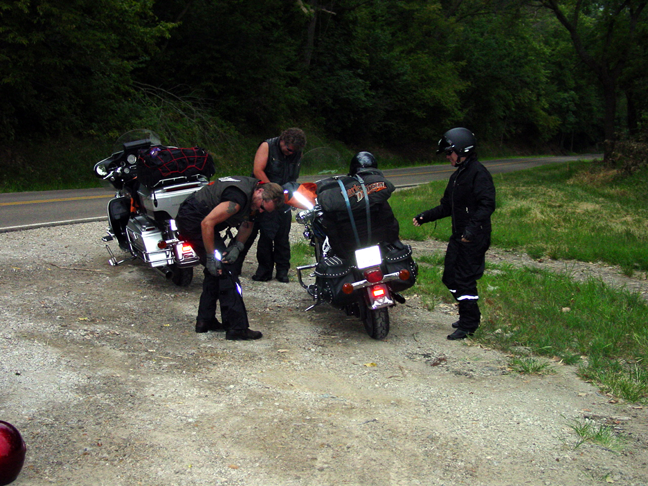 Auf den Spuren von 'Louis und Clark' fuhren wir entlang des Missouri Richtung Kansas City. Unterwegs hatte plötzlich Andys Springer keinen Strom mehr und wir waren froh, dass der nächste Händler nicht all zu weit weg war. Doch zu früh gefreut, er hatte keine Möglichkeit Andy's Bike zu transportieren, also musste zuerst ein Abschleppdienst organisiert werden.