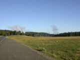 Hier im Yellowstone Nationalpark war Natur pur angesagt. Auf der grossen Rundfahrt (ca. 220 km) werden dem Besucher unvergessliche Bilder geboten. Wilde Tiere wie Bisons, Hirsche, Bären, etc. über die heissen vulkanischen Quellen mit den farbenprächtigen Steinablagerungen bis zum aktiven Old Faithful Geisyr. Dieser schiesst im Stundenrhytmus seine Fontäne in die Höhe, wobei er es dabei recht spannend macht. Das ganze Spektakel dauert ca. eine viertel stunde und jedesmal wenn er ein bisschen 'hustet', meint der Zuschauer es geht los und schiesst Foto um Foto, bis er sich nach zahlreichen 'Fehlalarmen' endlich in die Höhe ergiesst.