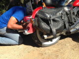Die Gute war dass Hanival vor Ort Hilfe organisieren konnte und der Reifen in enem nahgelegenen Ort repariert werden konnte.