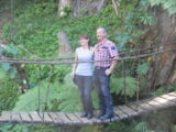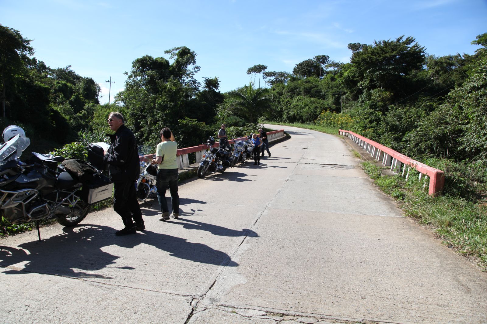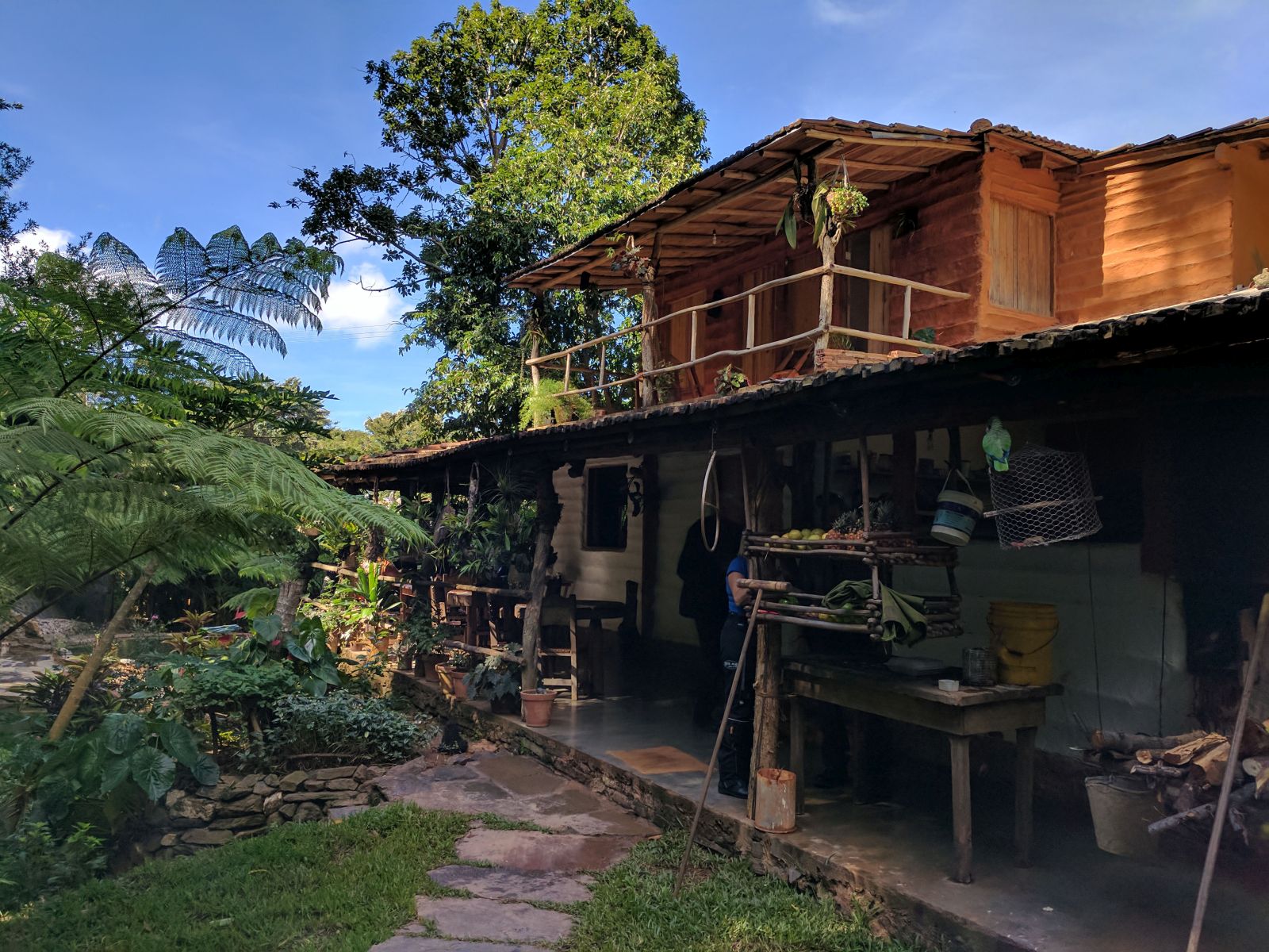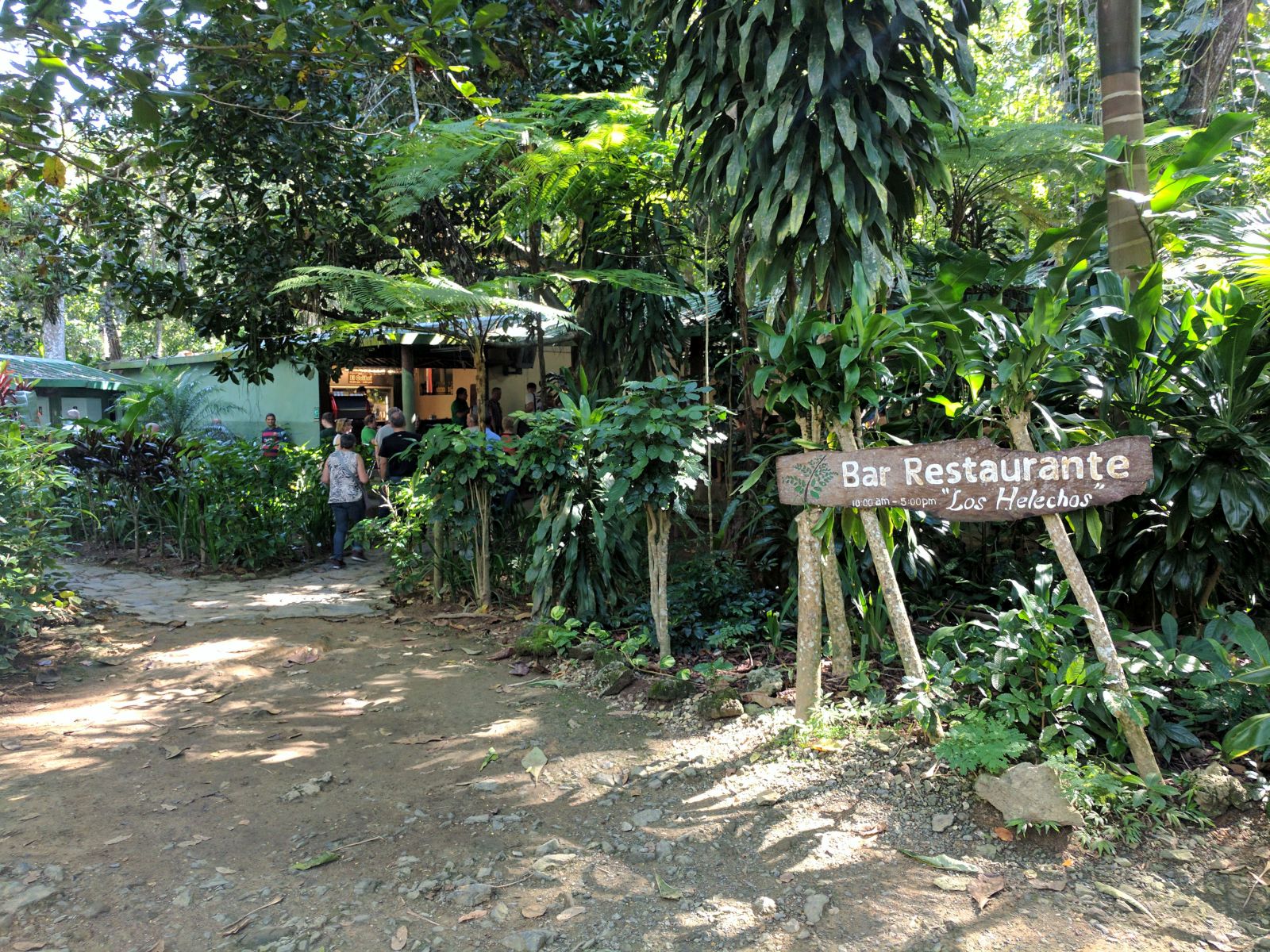 Kurz darauf entdeckte ich ein Restaurantschild, aber kein Gebäude dazu. Nur ein kleiner Parkplatz und daneben ein Tor. Ich machte mich auf die Erkundung was hinter dem Tor liegt und fand im 'Dschungel' ein Haus, das sich als das Restaurant 'El Manantial' inkl. Übernachtungsmöglichkeit herausstellte. Das im Wald gelegene Haus ist ein richtiges Kleinod in dieser Gegend. Wir bekamen da frischen Limonensaft und Kaffee. Schon bald traf Klaus mit den restlichen Teilnehmern ein und auch sie verpflegten sich hier.