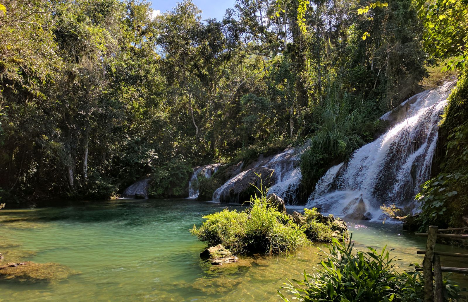 Beim geplanten Mittagshalt am Wasserfall 'El Nicho' durften wir feststellen, dass unser reserviertes Essen an eine andere Gruppe weitergegeben worden war. Somit hiess es Warten bis neu gekocht war... Die Wartezeit nutzten wir um die Wasserfälle zu besichtigen.