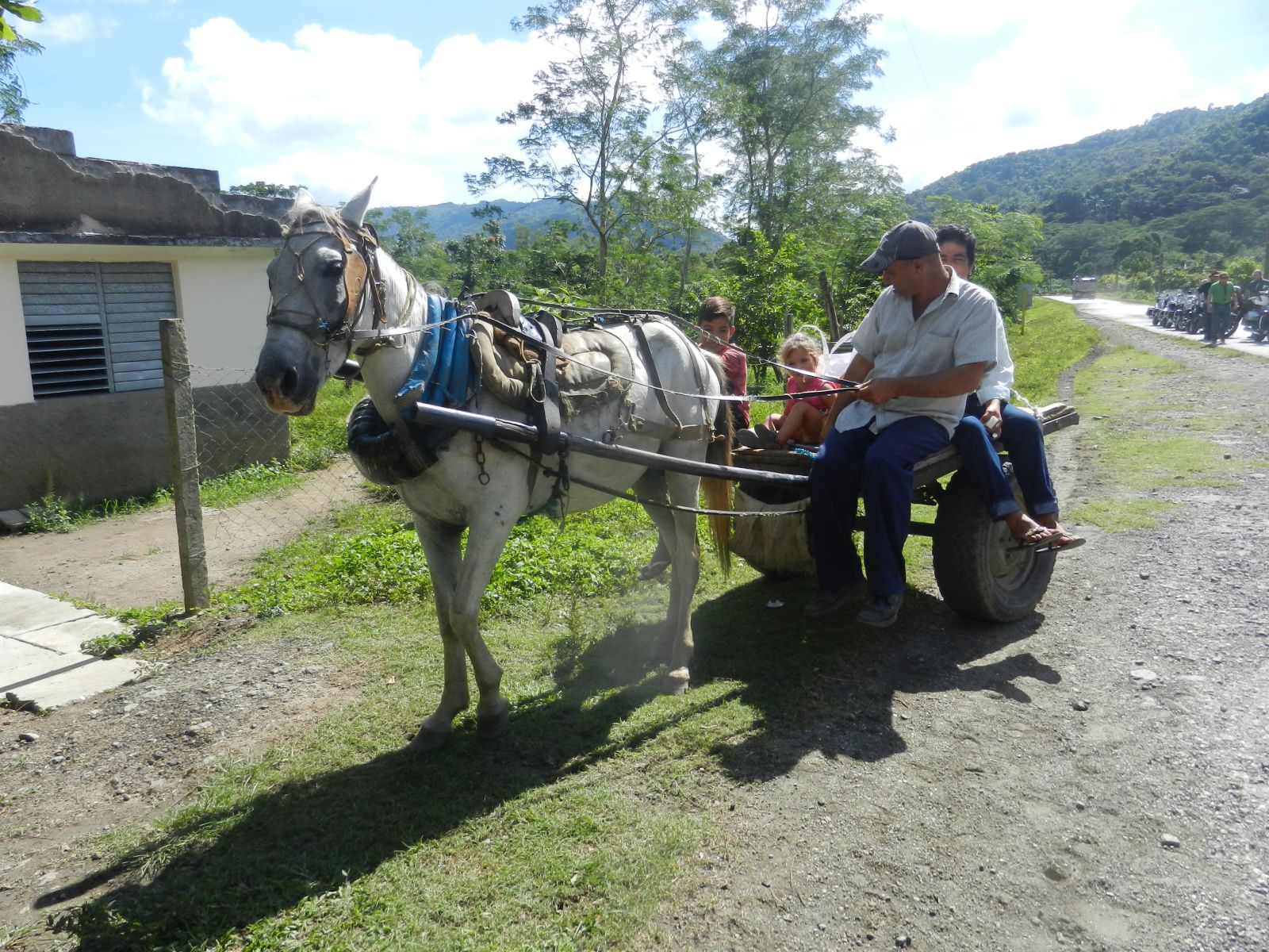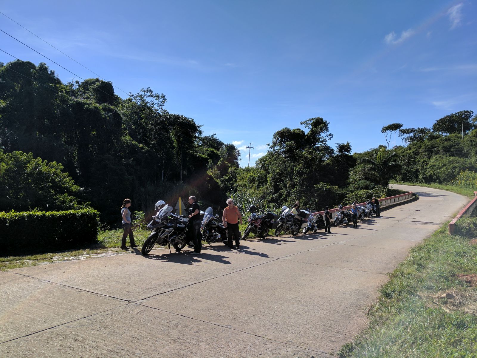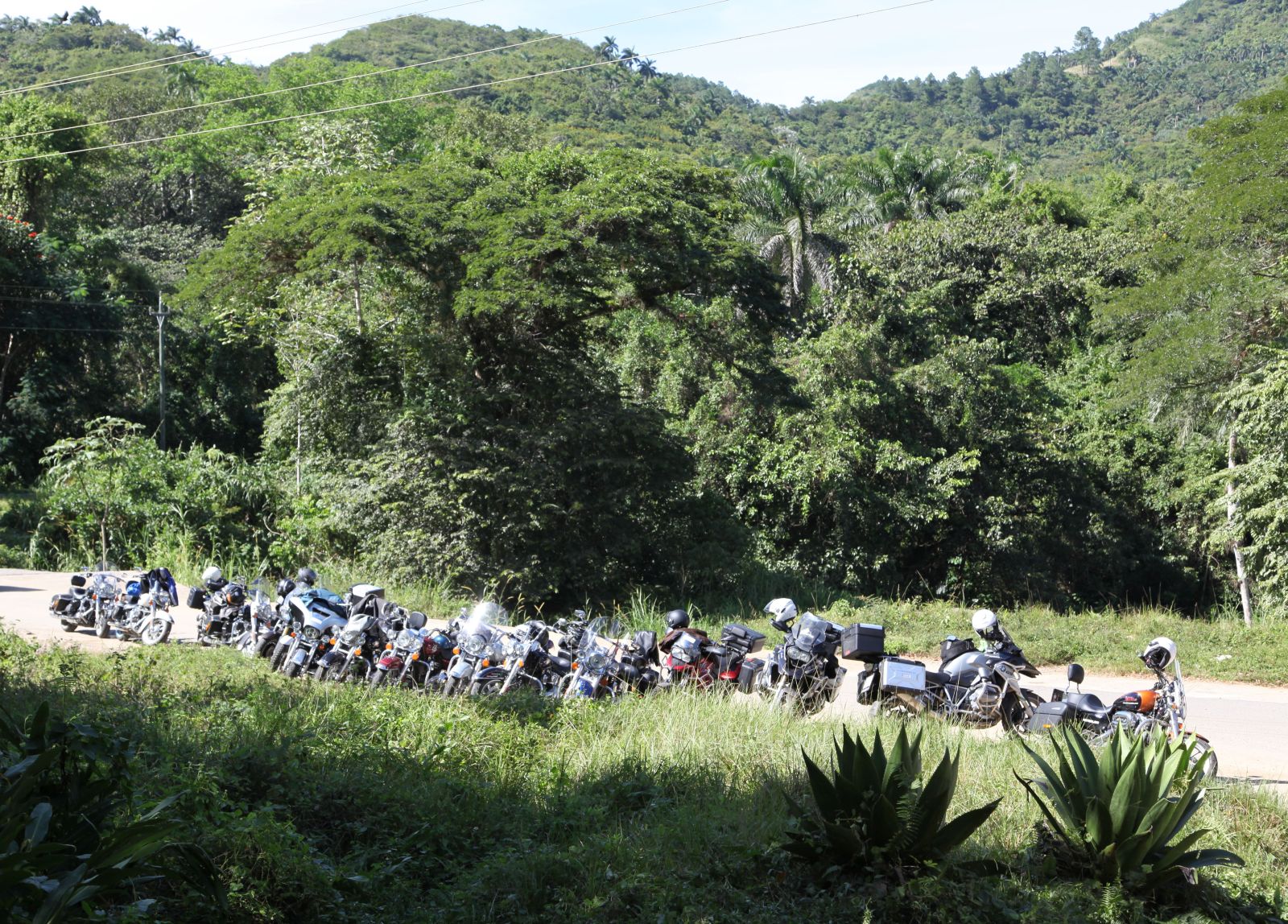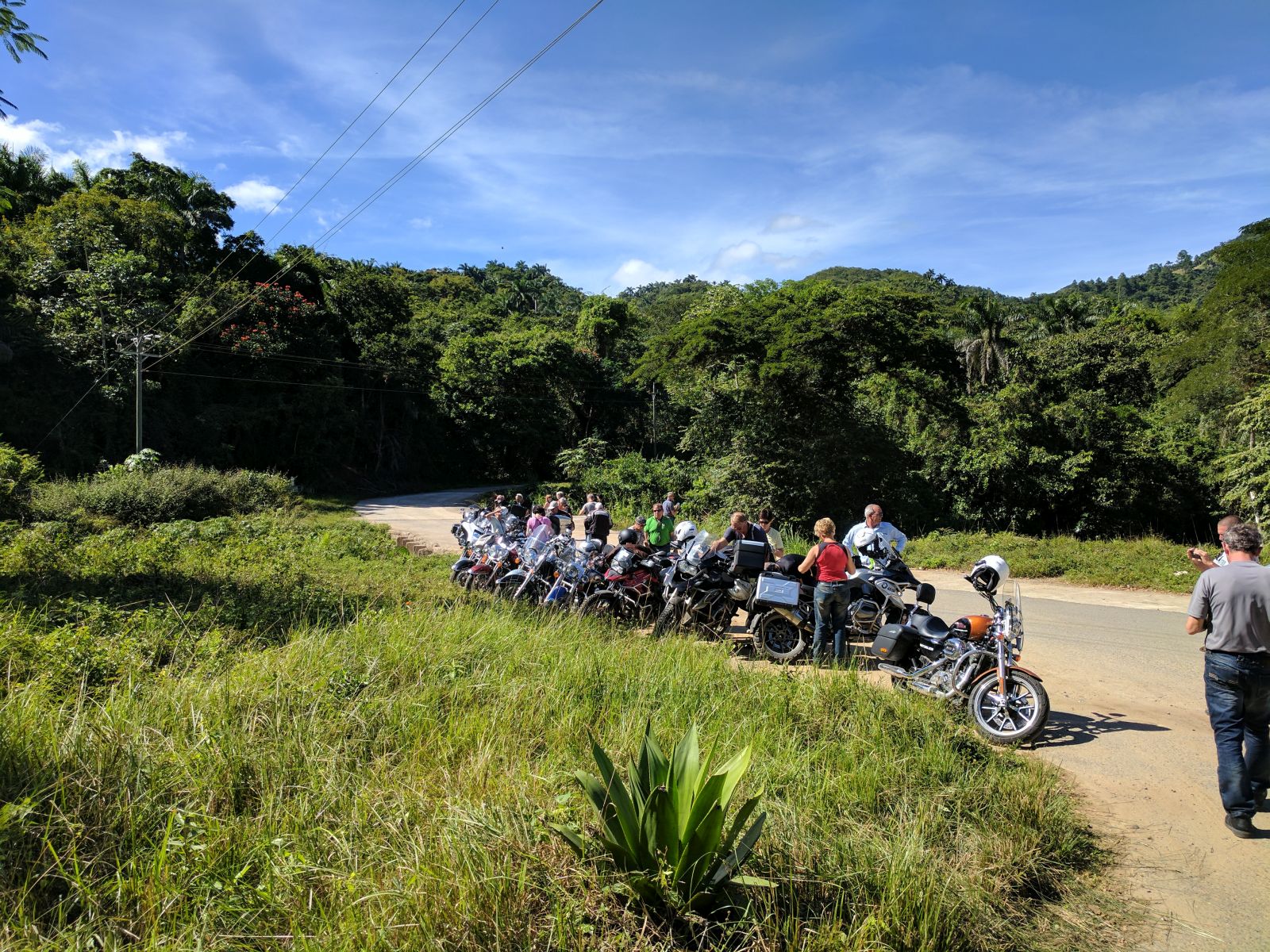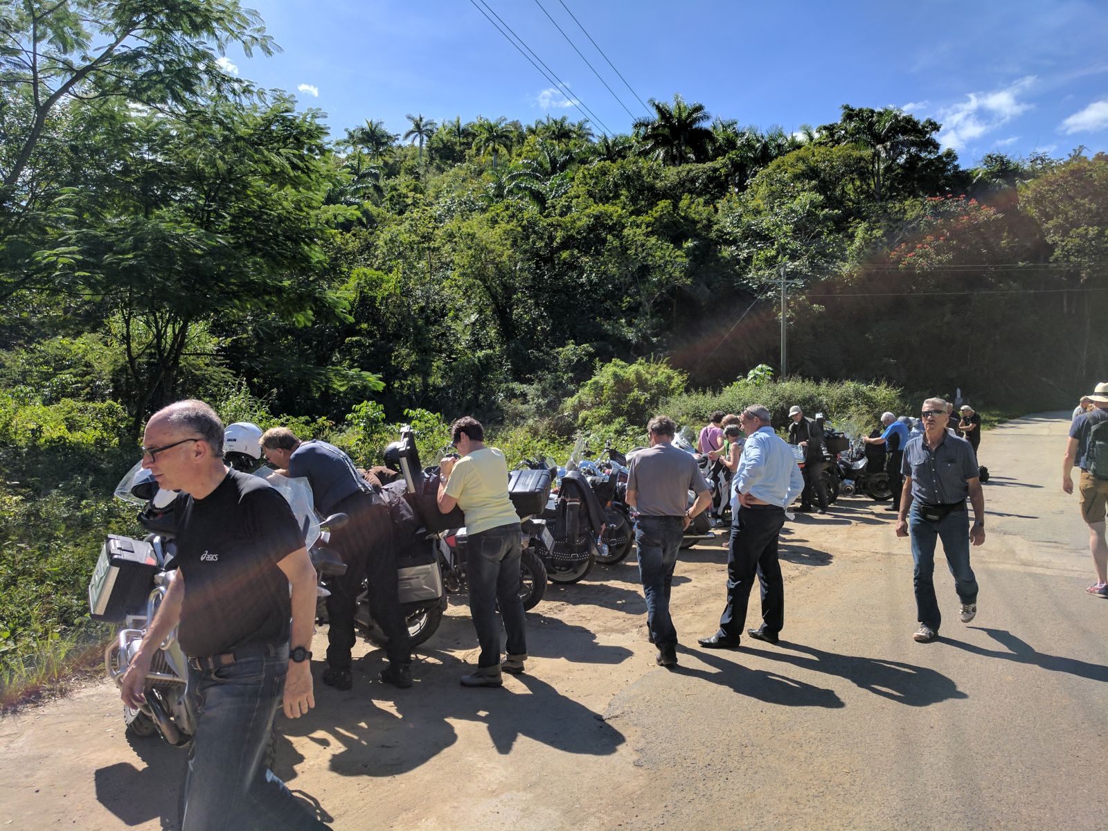 Unterwegs in die Berge 'Toppes de Collantes' hatten wir unsere einzige Panne während der Reise, einem Reifen ging die Luft aus. Während ich den vorderen Bikes nachfuhr, versuchte Hanival den Reifen mit ein paar Helfern zu flicken. Ich sammelte ein um das Andere wartende Bike ein, bis mir Klaus entgegen kam. Die Stelle war aber etwas unglücklich, denn es reichte uns Beiden nicht rechtzeitig beieinander anzuhalten, damit ich ihn hätte infomieren können. Somit fuhr er weiter zurück und ich mit der eingesammelten Gruppe weiter.
