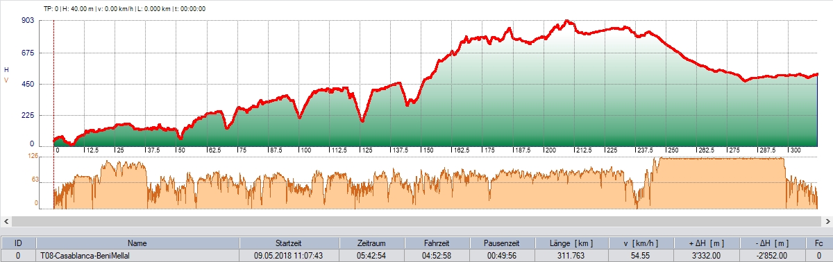 Nachdem das Auto beladen, Erwin seine Honda auch beim HD Händler abgestellt hatte führte uns die Route durch eine schöne Hügellandschaft und per Autobahn nach Beni Mellal.