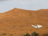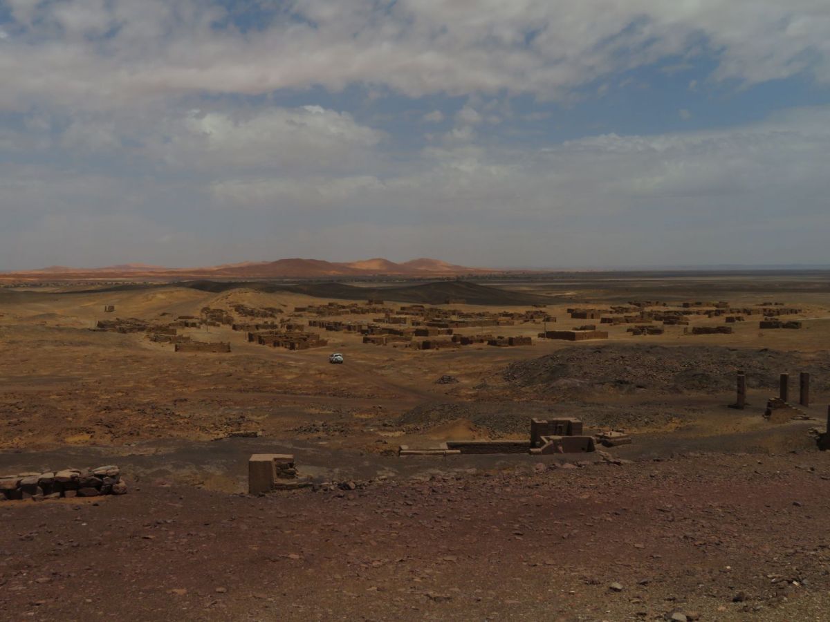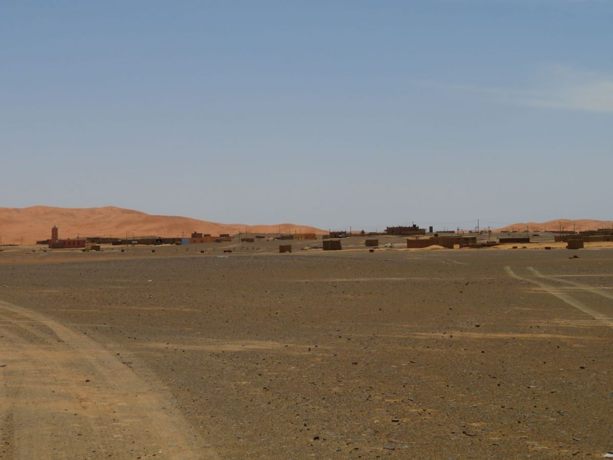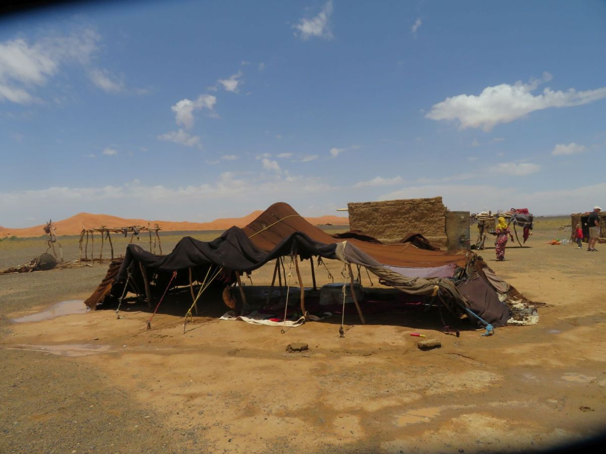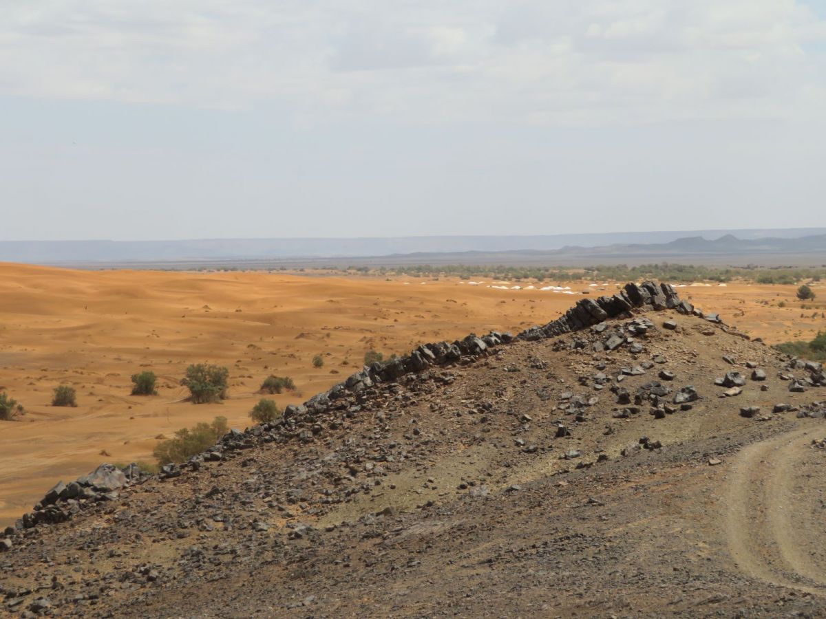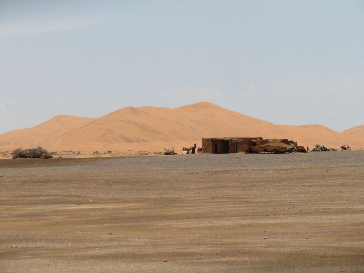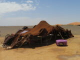 Da infolge des Ramadan wohl sonst niemand unterwegs war konnten wir auch selber Mineralien und Versteinerungen suchen. Dies wäre wohl bei 'Normalbetrieb' nicht möglich gewesen. Die Fahrt führte über einen Teil der Rallye 'Paris - Dakar', doch mein Fahrer konnte sich recht gut' im Zaum' halten und fuhr nicht, wie in vielen Berichten zu lesen ist, wie ein verhinderter Rallyfahrer über die Sandpiste. Unterwegs gab es bei einem Berberzelt eine kleine Zwischenverpflegung speziell für, denn der Fahrer und auch die Bewohner des Biwaks assen und tranken tagsüber nichts.
