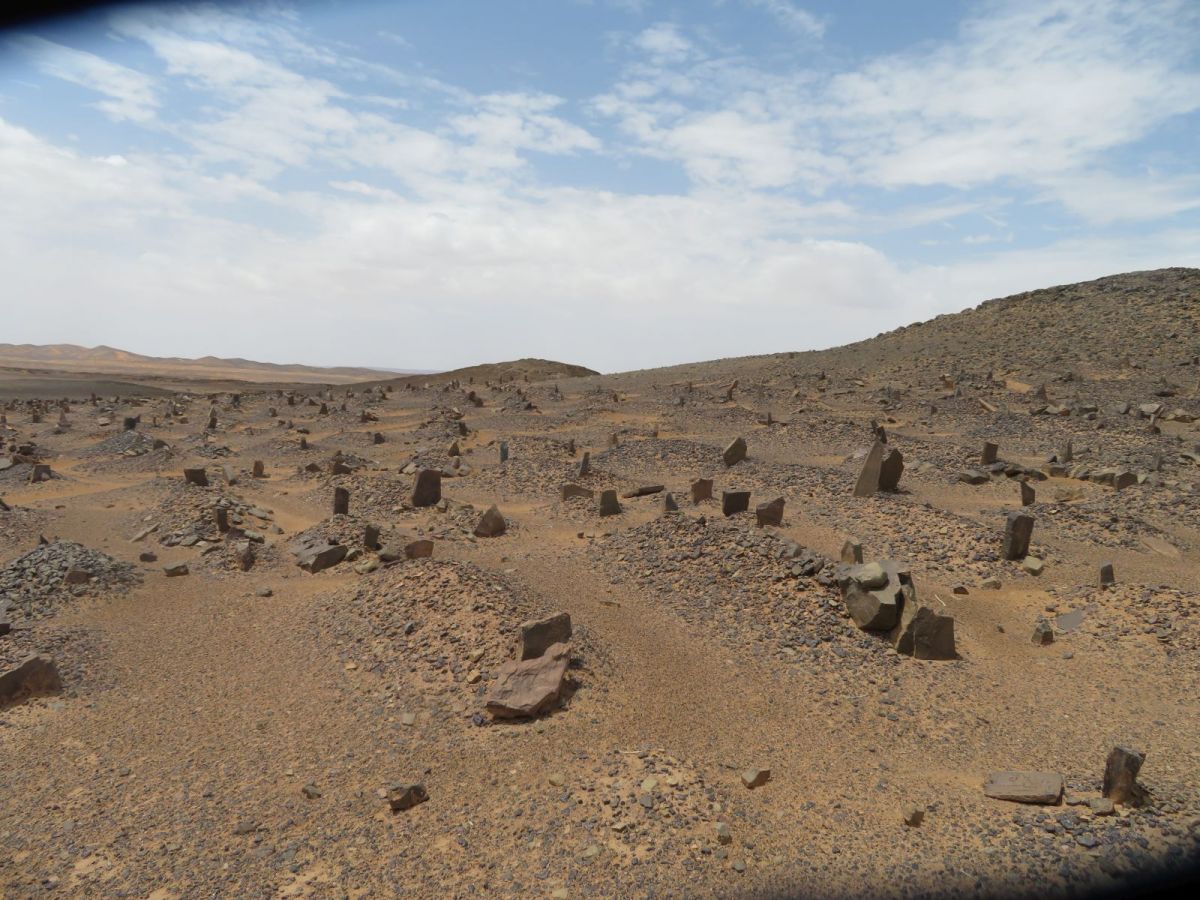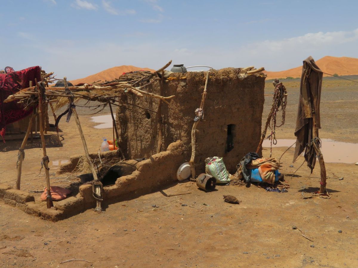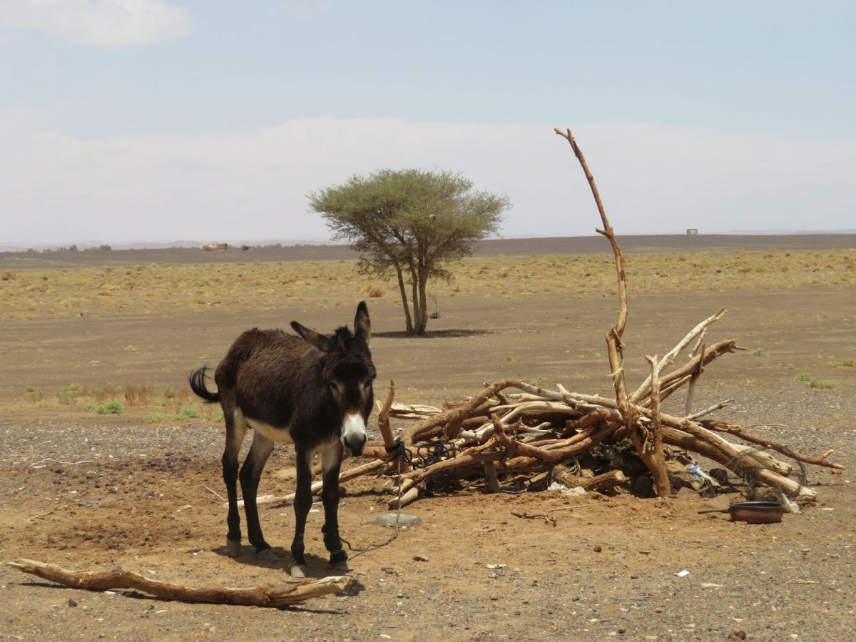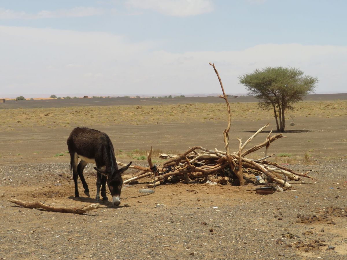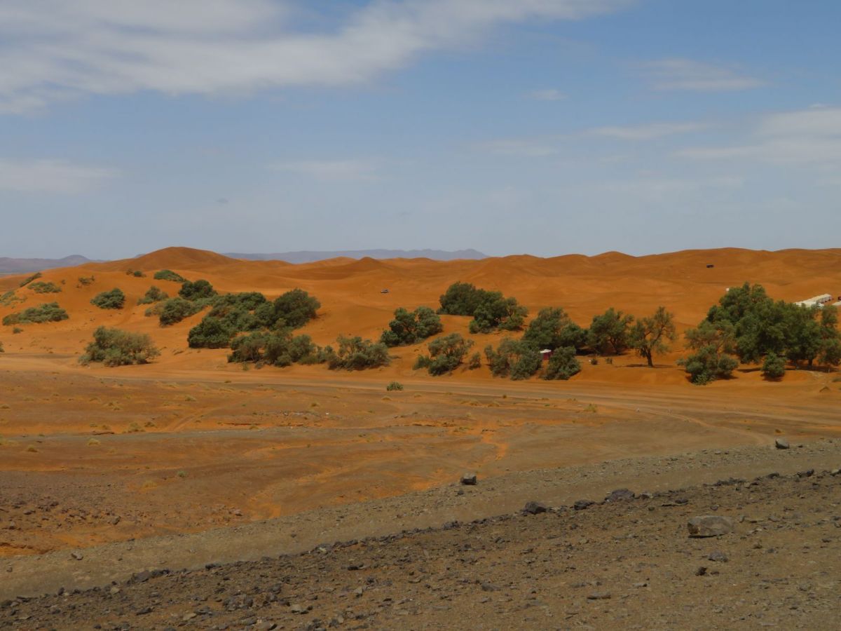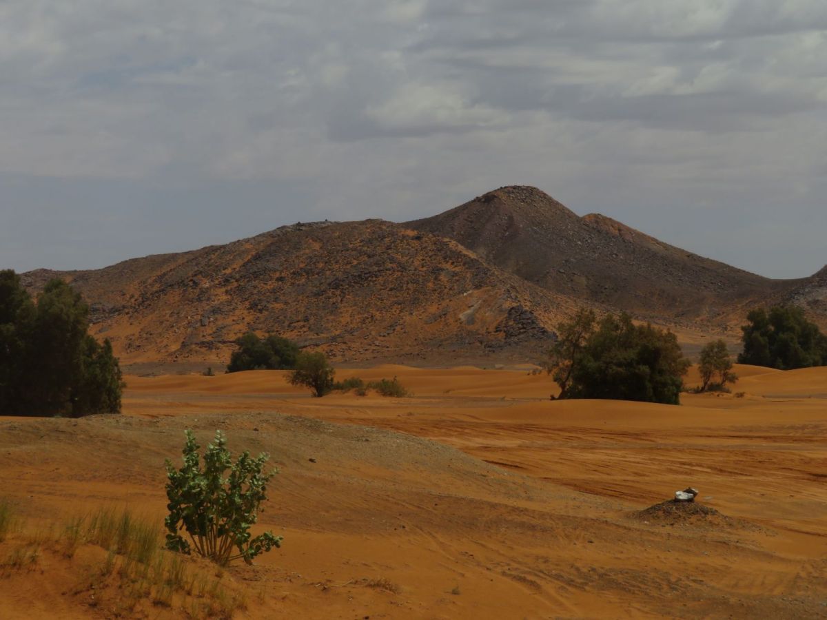 Da infolge des Ramadan wohl sonst niemand unterwegs war konnten wir auch selber Mineralien und Versteinerungen suchen. Dies wäre wohl bei 'Normalbetrieb' nicht möglich gewesen. Die Fahrt führte über einen Teil der Rallye 'Paris - Dakar', doch mein Fahrer konnte sich recht gut' im Zaum' halten und fuhr nicht, wie in vielen Berichten zu lesen ist, wie ein verhinderter Rallyfahrer über die Sandpiste. Unterwegs gab es bei einem Berberzelt eine kleine Zwischenverpflegung speziell für, denn der Fahrer und auch die Bewohner des Biwaks assen und tranken tagsüber nichts.