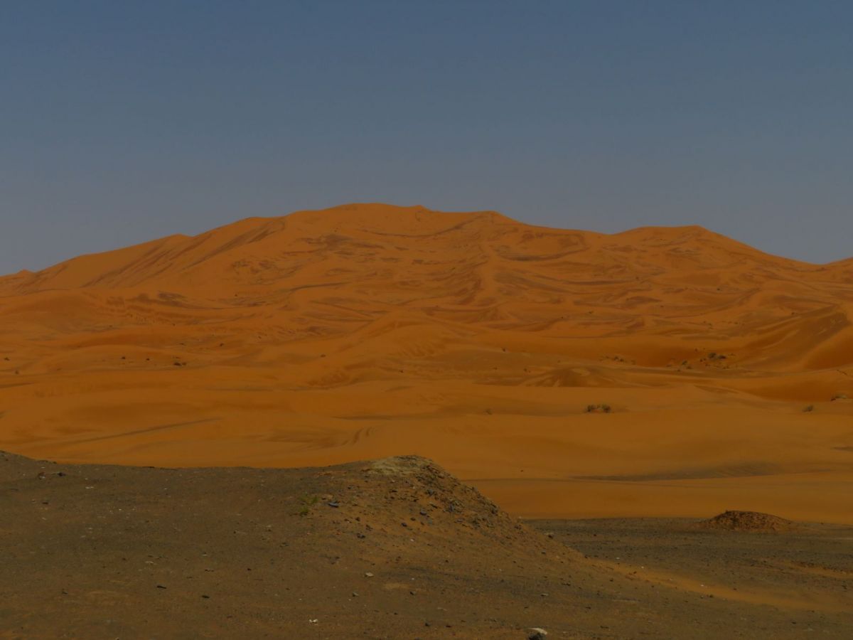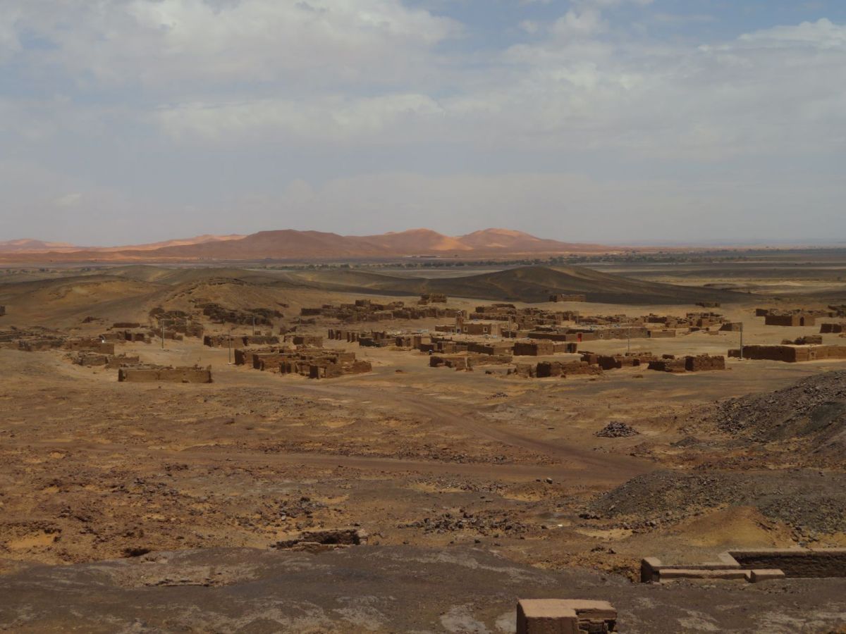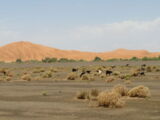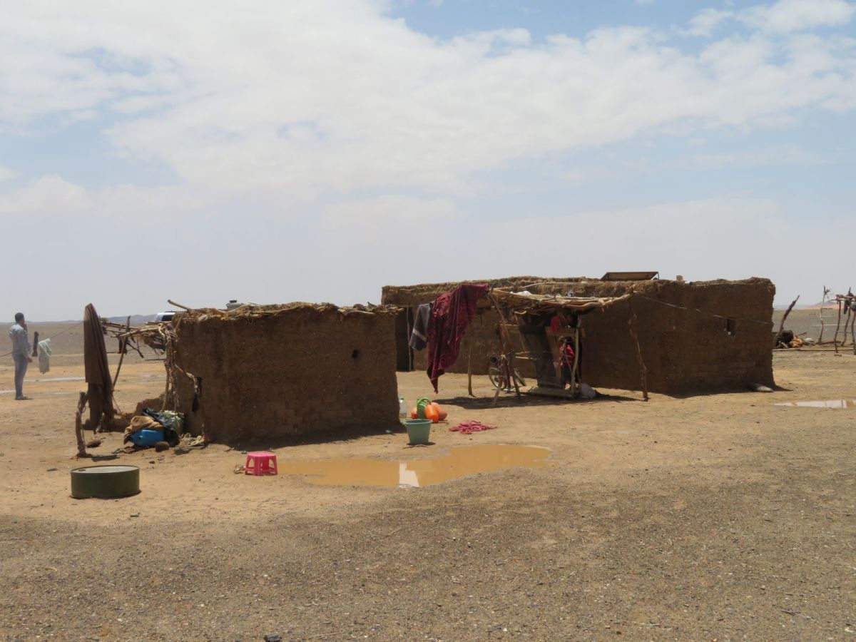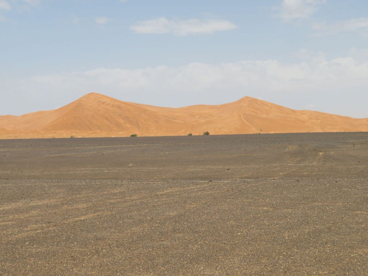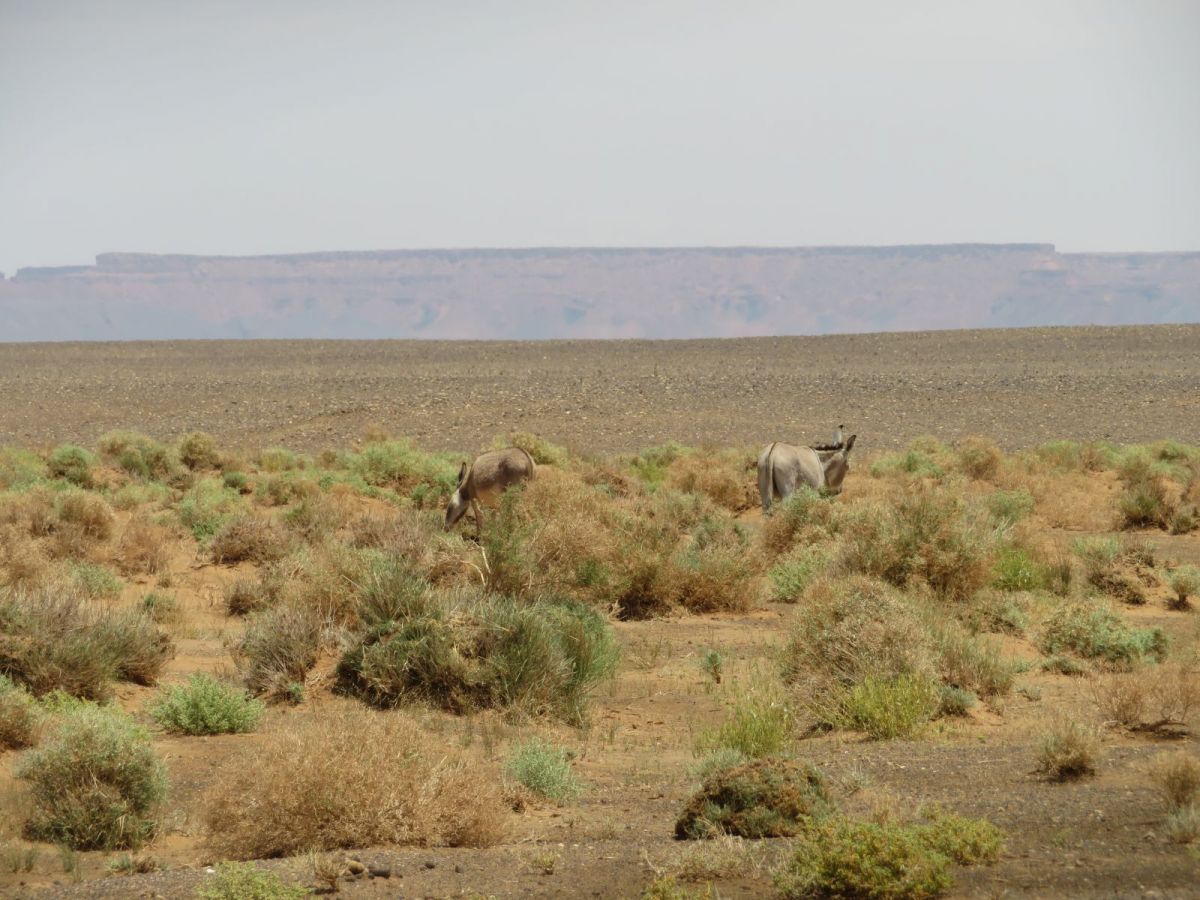 Da infolge des Ramadan wohl sonst niemand unterwegs war konnten wir auch selber Mineralien und Versteinerungen suchen. Dies wäre wohl bei 'Normalbetrieb' nicht möglich gewesen. Die Fahrt führte über einen Teil der Rallye 'Paris - Dakar', doch mein Fahrer konnte sich recht gut' im Zaum' halten und fuhr nicht, wie in vielen Berichten zu lesen ist, wie ein verhinderter Rallyfahrer über die Sandpiste. Unterwegs gab es bei einem Berberzelt eine kleine Zwischenverpflegung speziell für, denn der Fahrer und auch die Bewohner des Biwaks assen und tranken tagsüber nichts.