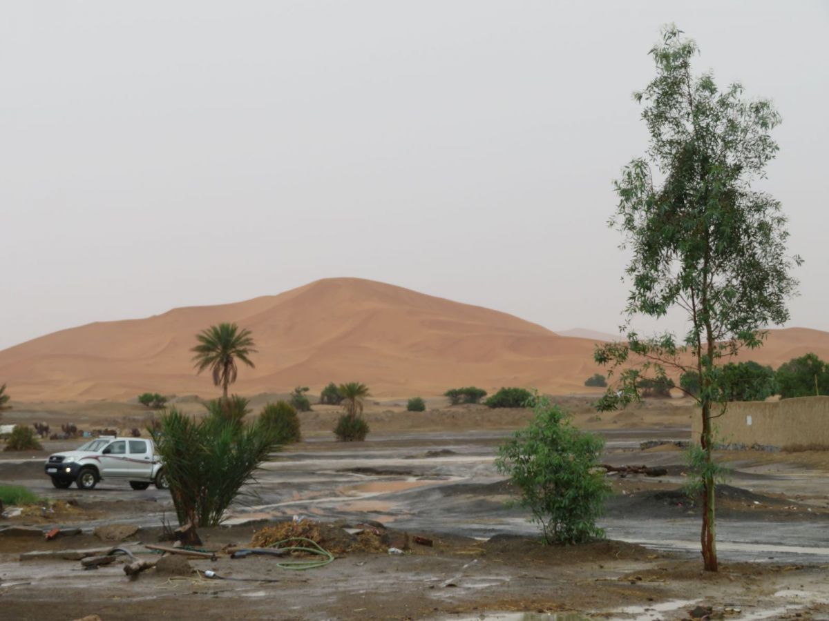 Es schüttete die ganze Nacht. So war kein Sonnenaufgang Kamelritt auf die Dünen machbar. Im Lauf des Vormittags hörte der Regen auf und es wurde recht schnell trocken und ich entschied mich eine Wüstentour mit einem 4x4 Jeep zu machen.