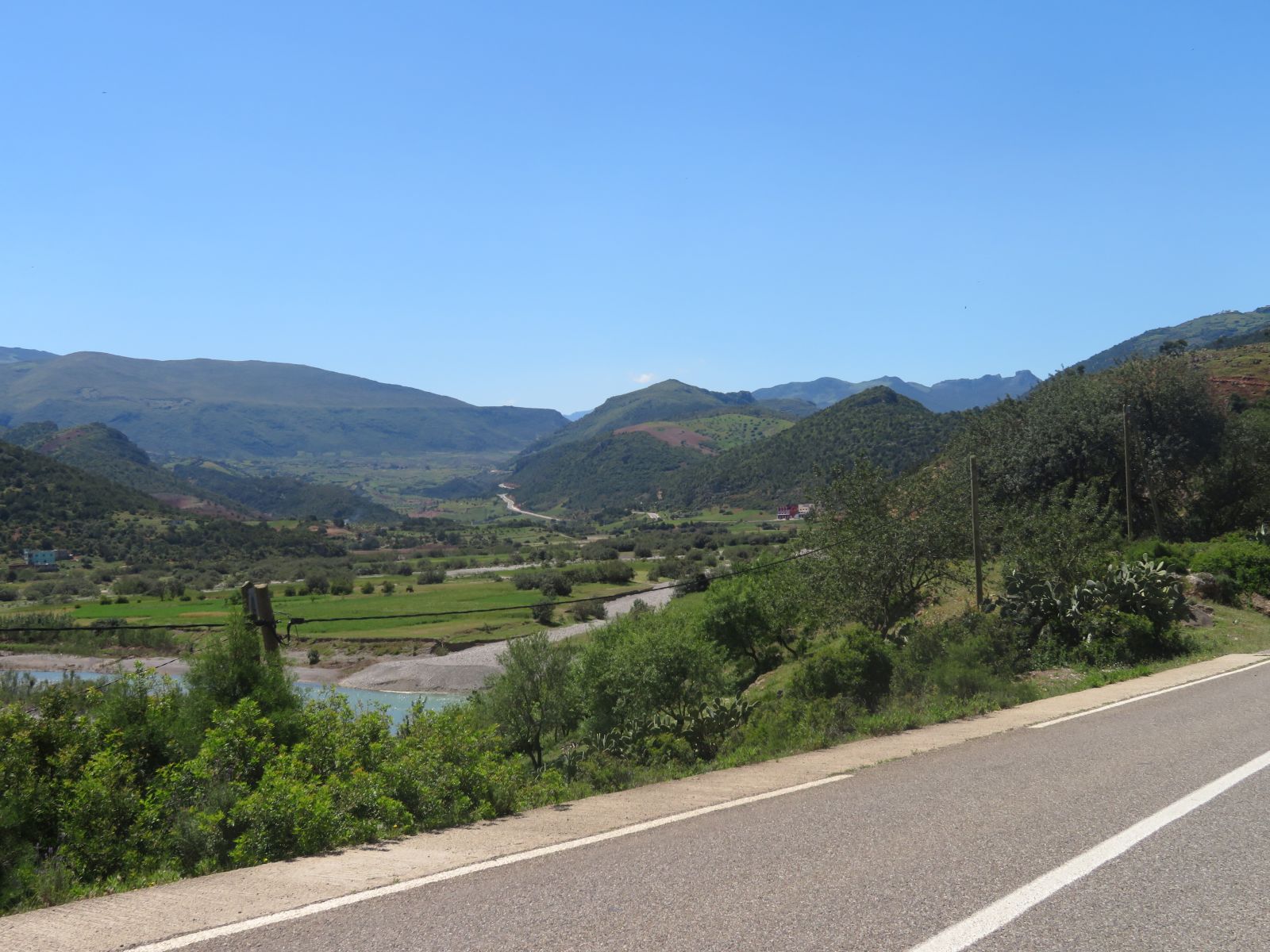 Da die Nacht doch recht kurz war und wir was von Chefchauen sehen wollten entschlossen wir uns zu der kürzeren Route. Diese führte uns erstmals auf einer Nebenstrasse durch die Hügel nach Tetouan. Hier erreichten wir das Mittelmeer wo die neu gebaute Küstenstrasse zu zügigem Kurvenfahren einlud.