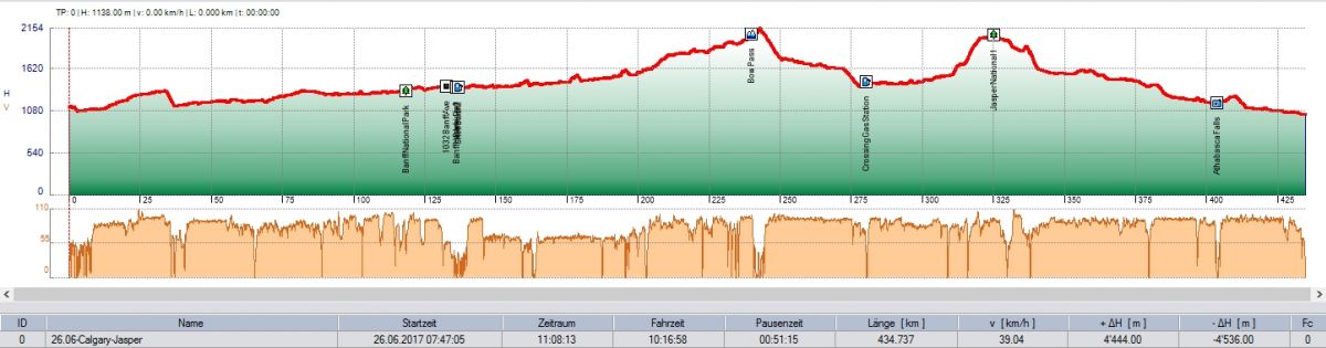 Durch die weite Prärie fahrend, nähern wir uns stetig den am Horizont liegenden kanadischen Rocky Mountains. Eine der spektakulärsten und bekanntesten Strassen Kanadas, der IceField Parkway, führt uns durch den Banff- und Jasper-Nationalpark zum heutigen Etappenziel. Neben vielen anderen Aussichtspunkten lohnt sich speziell die Besichtigung der Athabasca Falls.