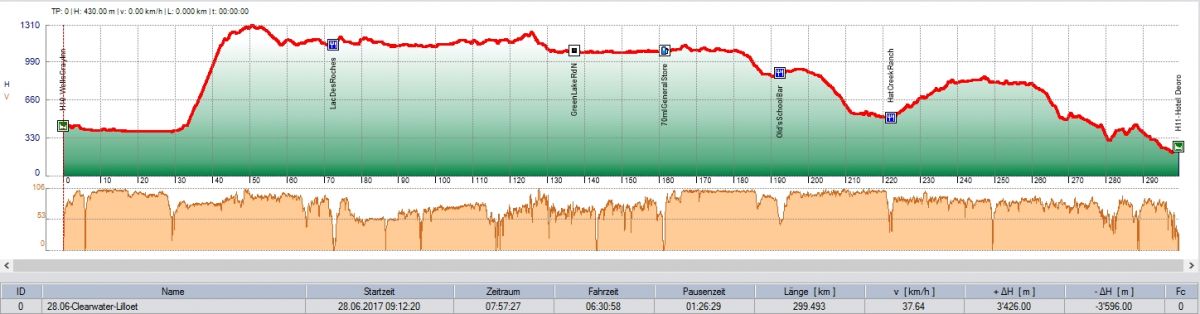 Nach einer Übernachtung in der Wildnis fahren wir heute entlang kristallklaren Bergseen (Bridge-, Sheridan- Green - Lake) zu den Coastal Mountains und übernachten am Fraser River in Lilloet.