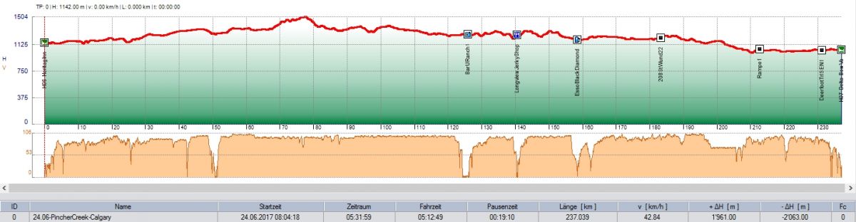 Heute fühlen wir uns wie früher die Cowboys auf ihren langen, endlosen und einsamen Trails. Kilometer um Kilometer fahren wir durch die Prärie auf dem 'Cowboy Trail' nordwärts.