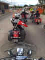Zu Beginn der heutigen Etappe fuhren wir die mother Road auf der Strecke wie sie vor 1937 war, bevor sie hier begradigt wurde. Nach der Fahrt entlang des Rio Grandes biegt die Route bei Los Lunas wieder nach Westen ab um nach einem grossen Bogen bei Mesita auf die heutige Interstate zu treffen. Kurz vor Mesita ist die Originalstrecke nicht mehr asphaltiert und so zog es Klaus vor über die asphaltierte Strasse und die Interstate nah Mesita zu fahren. Ich kann ihn verstehen, denn ich bin diese Strecke nur einmal gefahren, aber danach sahen wir und die Bikes aus wie wenn wir in einen Sandsturm gekommen wären.