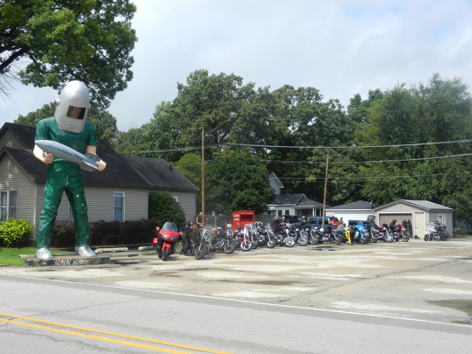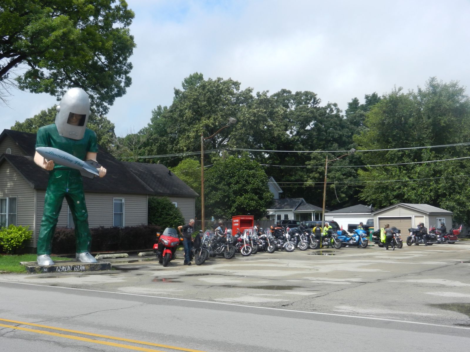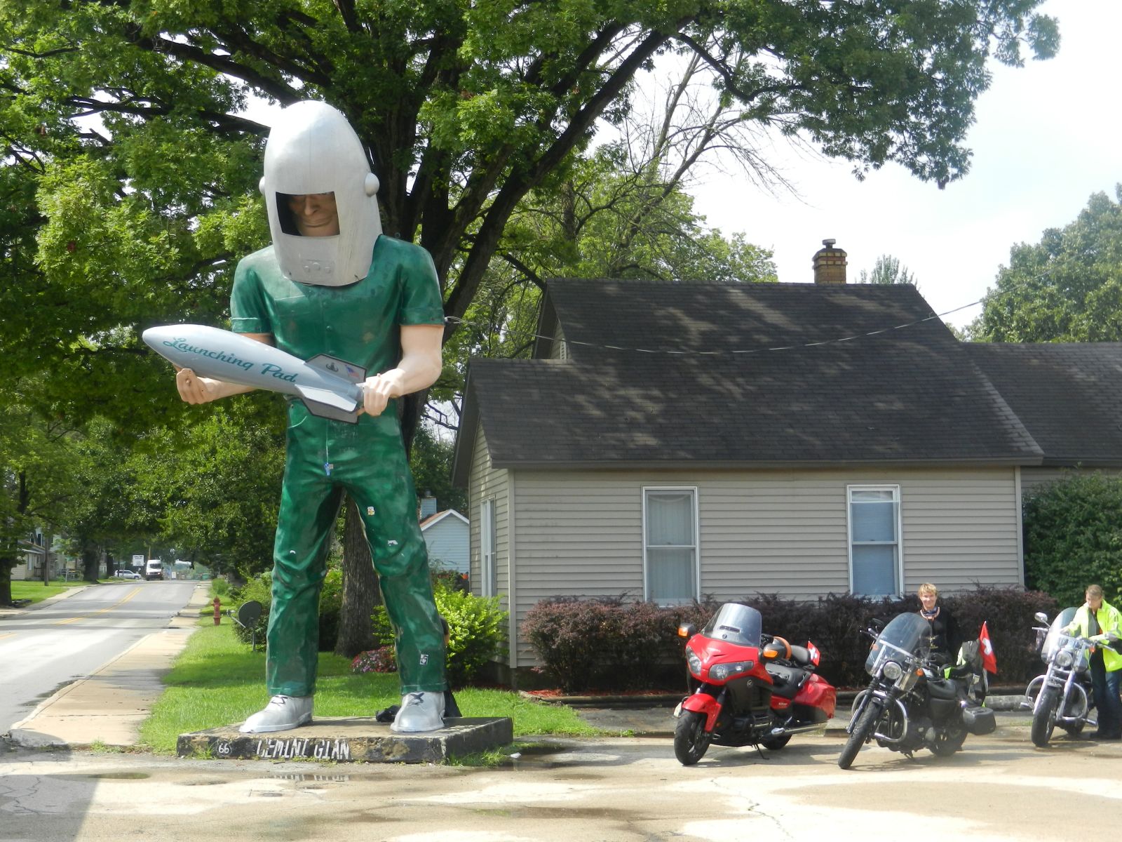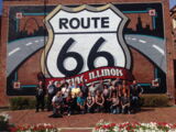 Schon bald war fertig gepackt und bei leichter Nässe fuhren wir los. Erstmal war Tanken angesagt und weiter ging es auf direktem Weg südwärts aus der Stadt hinaus. Auf dem Weg nach Joliet waren links und rechts der Strasse die ersten Zeichen aus alter Zeit zu sehen. Nach einem Abstecher zum Lincoln Freidhof und kurz vor der Mittagsverpflegung in Nelly's Restaurant, gab's einen Fotostop beim Gemini Astronauten.