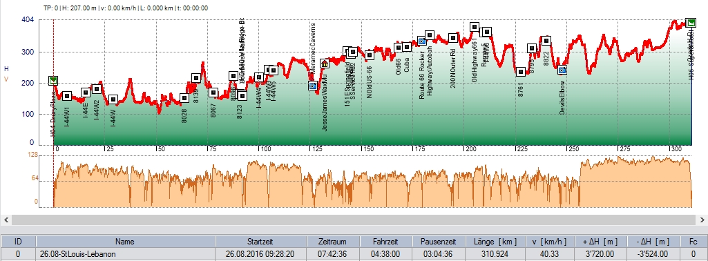 Der Originalstrecke aus St. Louis hinaus zu folgen ist echt mühsam, daher nahmen wir den Highway. Um nicht auf dem Highway bis zum HD-Händler von Villa Ridge zu fahren gibt es etwas ausserhalb der Stadt nördlich und südlich der Autobahn Möglichkeiten 'über Land' zu fahren. Klaus nahm die Südvariante.