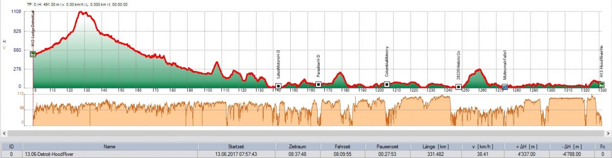 Nach einer Einkaufstour in der Region Portland kam ich an den Columbia River und der historischen OR 30. Dieses Strassenstück ist das Ende des ‘Oregon Trails’, der durch neun Staaten von Missouri nach Oregon führt. Hier gab es viel (Wasserfälle, etc.) zu fotografieren, so dass ich für diese Strecke bis zum Hotel mehr als doppelt so lange wie angegeben benötigte.