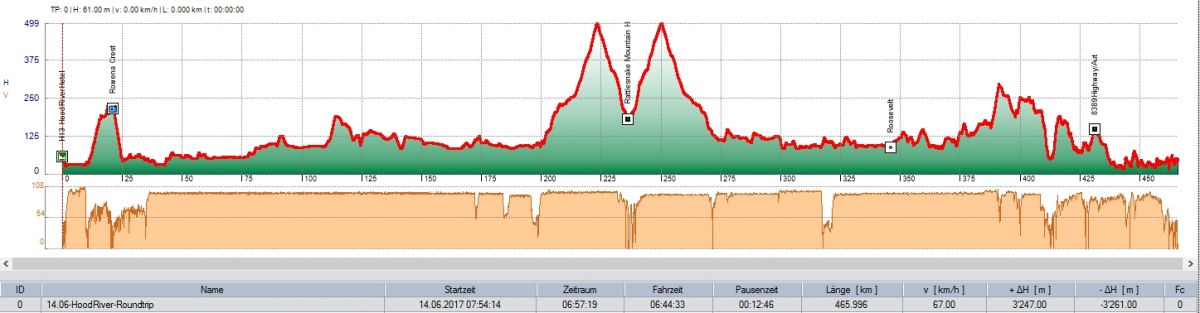 Da die Strecke vom übernächsten Tag von Yakima nach Silver Lake zu einem grossen Teil über noch gesperrte Strassen führt, bleibe ich für zwei Tage in Hood River und mache morgen einen Tagesausflug entlang des Colubia Rivers.