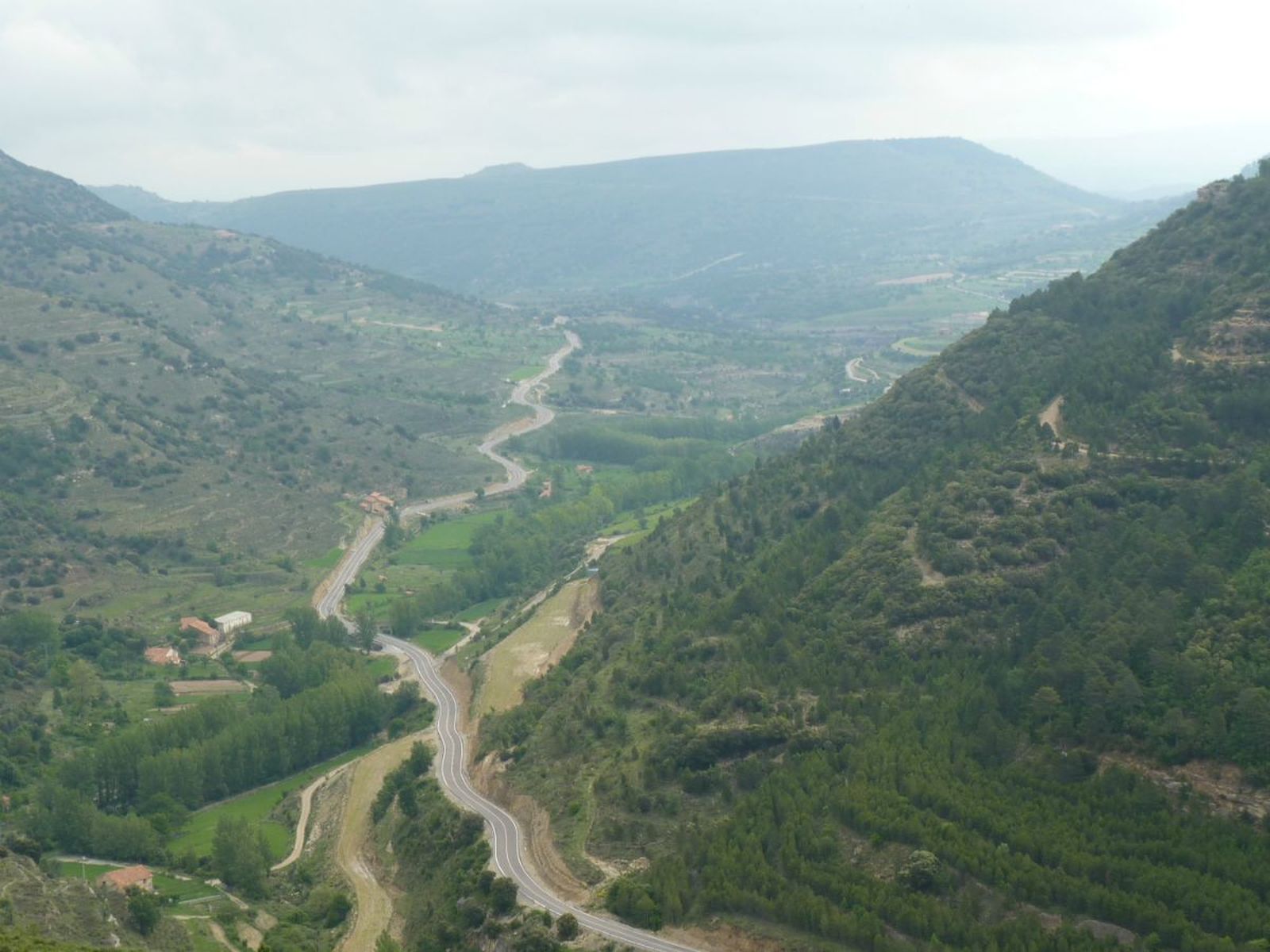 Nach diesem Halt sollte es gemäss Karte weiter kurvenreich durch die Berge gehen. Hier wurde aber vor kurzem gebaut und die neue Strasse zog recht begradigt über Brücken und durch Tunnels an den kleinen Ortschaften vorbei. Auf unserem Weg an den Rio Ebro und dem Castell de Miravet machten wir noch in Valderrobres einen kurzen Halt.