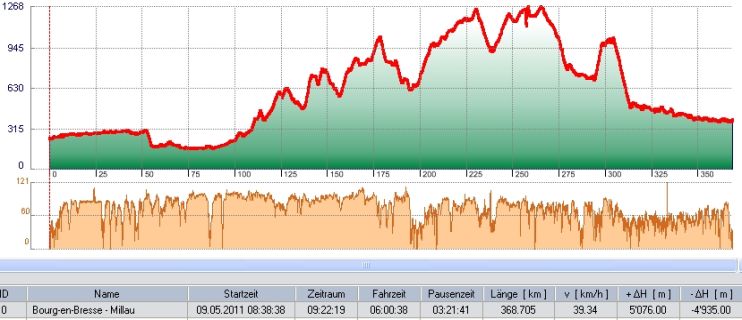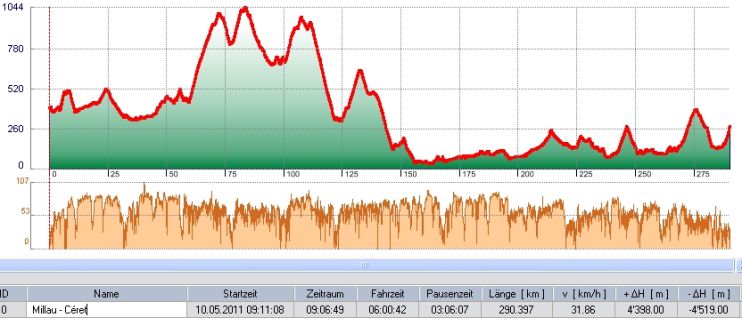 Wie am Vorabend schon besprochen, änderten wir die geplante Route ab und fuhren über Lyon und die Ausläufer des Massif Central Richtung 'George du Tarn' und Millau.