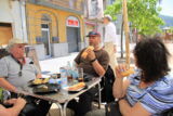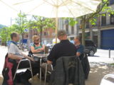 Da Kari bei den Fehlenden dabei war machte ich mir keine grösseren Sorgen dass die nicht das Etappenziel finden würden und wir fuhren nach Ripoll hinein um das Mittagessen zu uns zu nehmen. Eine Tapasbar mit Tischen auf der Terrasse lud schon von Weitem ein und daneben war auch genügend Platz um unsere Bikes abzustellen. Die frisch zubereiteten Boccadillos und Tapas schmeckten sehr gut, doch bei gut 20 Personen dauerte es doch sehr lange bis wir Alle bedient waren.