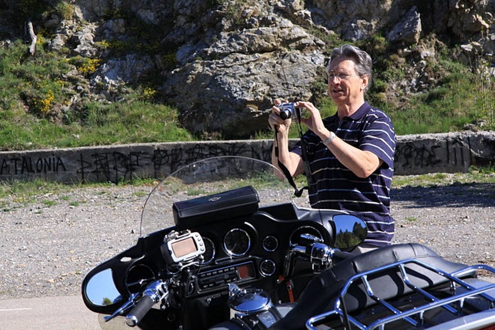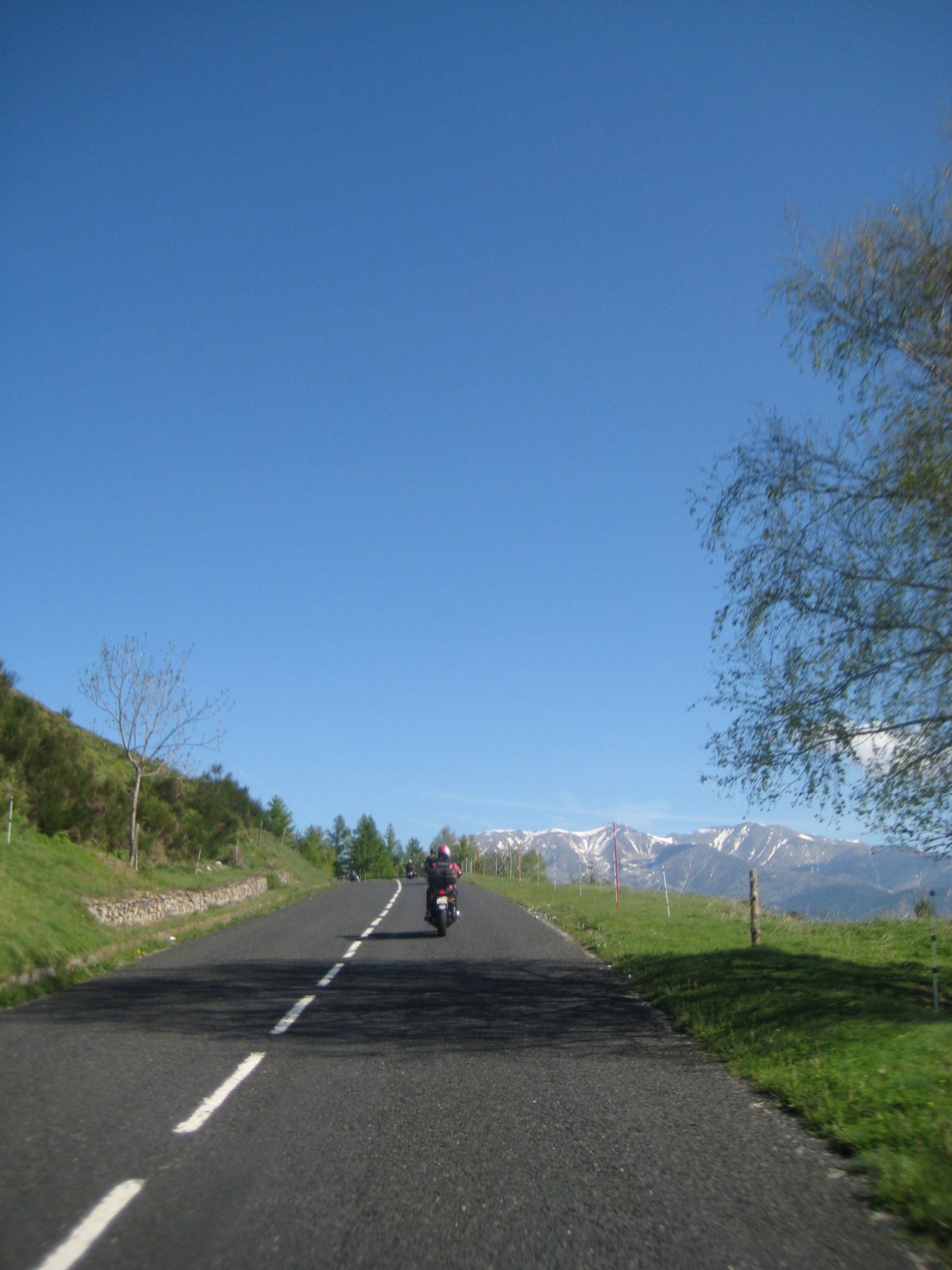 Die Route führte uns auf einer schönen kurvenreichen Strasse in das Tal der Tech hinein und an die spanische Grenze auf dem Prats de Mollo. Hier gab es den ersten Halt und wir genossen den Ausblick in die z.T. noch schneebedeckten Pyrenäen. Beim Runterfahren ins Vall de Camprodon hielt ich nach einem Restaurant oder Kaffee Ausschau um da einen Kaffeehalt einzulegen. Leider lag nichts an der Route und in Camprodon fuhr ich mal ins Städtchen hinein. Zwei kleinere Bars waren da vorhanden und wir verteilten uns in diese und kamen so zu einer Stärkung.