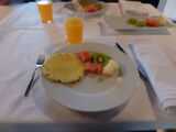 Wie Alles am Hotel etwas speziell war, war es auch das Frühstück. Anstatt einem gewohnten Frühstücks-Buffet wurde uns das Frühstück in einem 'Drei-Gänger' portionenweise (Früchte, Schinken, Käse, etc.) serviert.