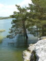 Wir erreichte so über die Hauptstrasse und einem kleinen Stück Autobahn den Stausee wo wir Mittagsrast hielten. Beim Camping war es sehr nass am See und auch keine öffentliche Infrastruktur vorhanden. Ein paar Kilometer weiter fanden wir dann an der Playa Pita das gewünschte : offener Wald mit vielen Picknickplätzen und genügend Parkplatz. Das Areal ist da so gross, dass wohl an einem schönen Sommertag recht viele Leute von Soria und der weiteren Umgebung hierhin kommen um sich zu erholen. Heute war aber ausser uns niemand da und wir konnten die Ruhe beim Picknicken am Stausee richtig geniessen.