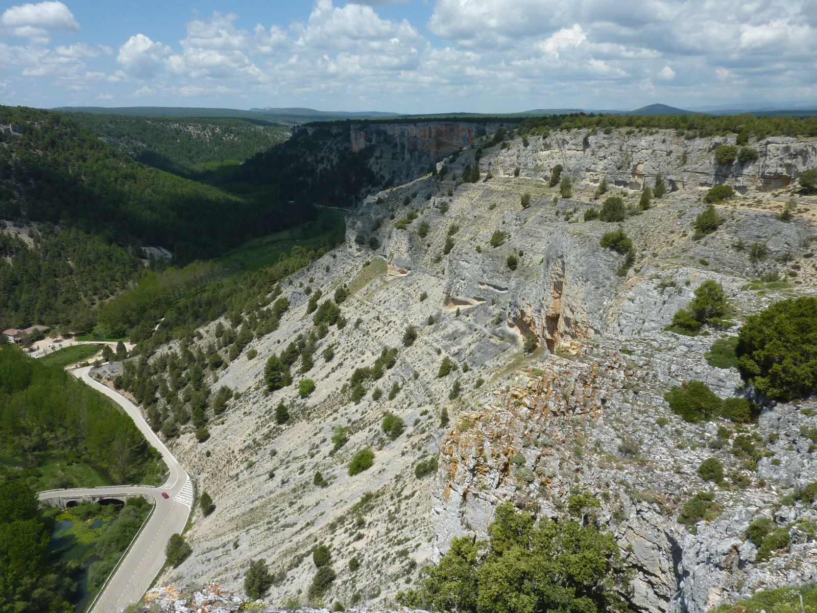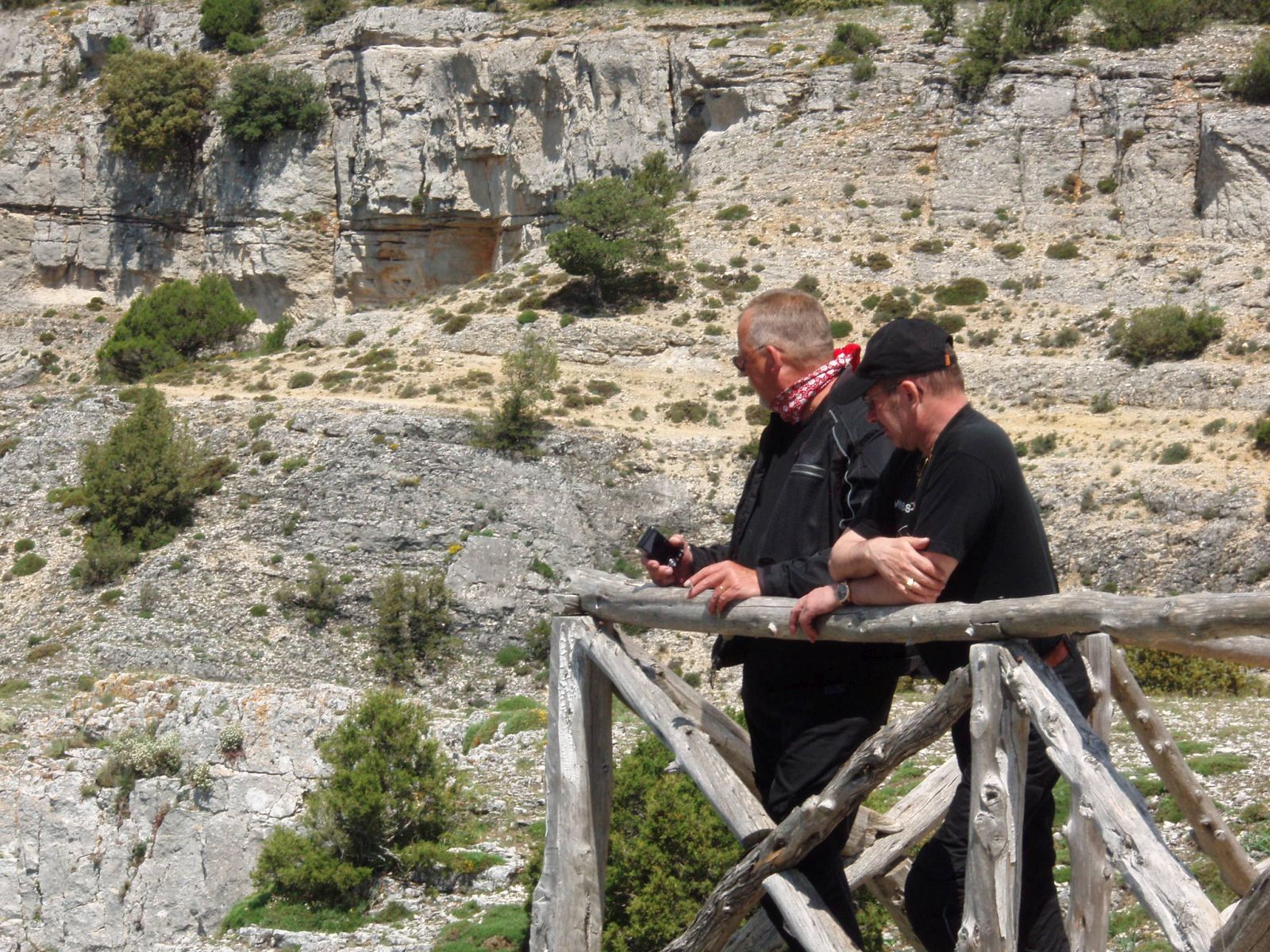 Die Strasse, welche uns am Nachmittag gegen den Cañon del Rio Lobos führte, erinnerte stark an die weiten Hügelstrasse i^m Süden von Arizona und New Mexiko. Beim Mirador de la Galiano hielten wir an und genossen die Ruhe und die Aussicht in den Canõn hinein. Die Strecke führte uns anschliessend kurvenreich zum Rio hinunter. Beim Ausgang des Cañons in Ucero lag eine Bodega, welche zu einem Rast einlud. Im Innern des Restaurants war das Cheminée eingeheizt und viele Besucher am Essen. Das Gebäude war an den Fels gebaut, so dass dieser eine natürliche Rückwand bot. Hinter der Theke hingen viele frische Jamons de Serrano, welche zu eine Racion einluden, doch wir verzichteten diesmal und tranken nur etwas.