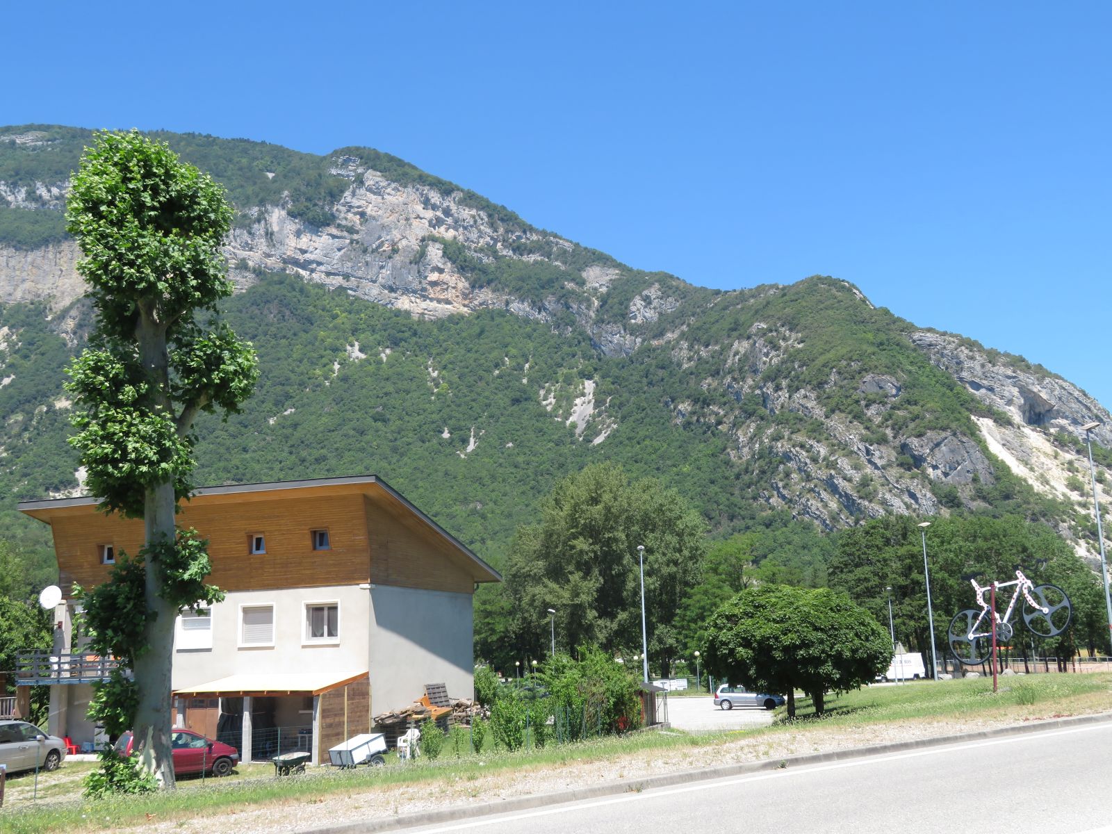 Danach ging es südwärts auf kleinen Nebenstrassen zum Col de la grand Colombier hinauf, wo man eine sensatinelle Aussicht gegen den Mont Banc und Lac du Bouget hat. Weiter führte mich die Route über Krete durch die heiseen Kurven bei den Lacets du Grand Colombier nach Chenaz, einem klenen Dorf am Canal de Saviere.